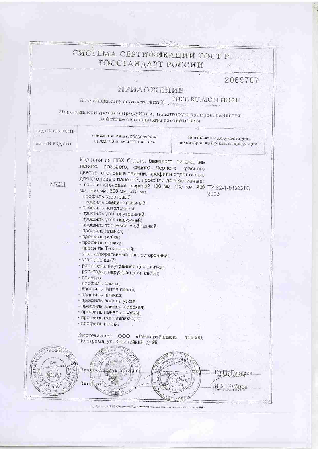 Основной материал ПВХ