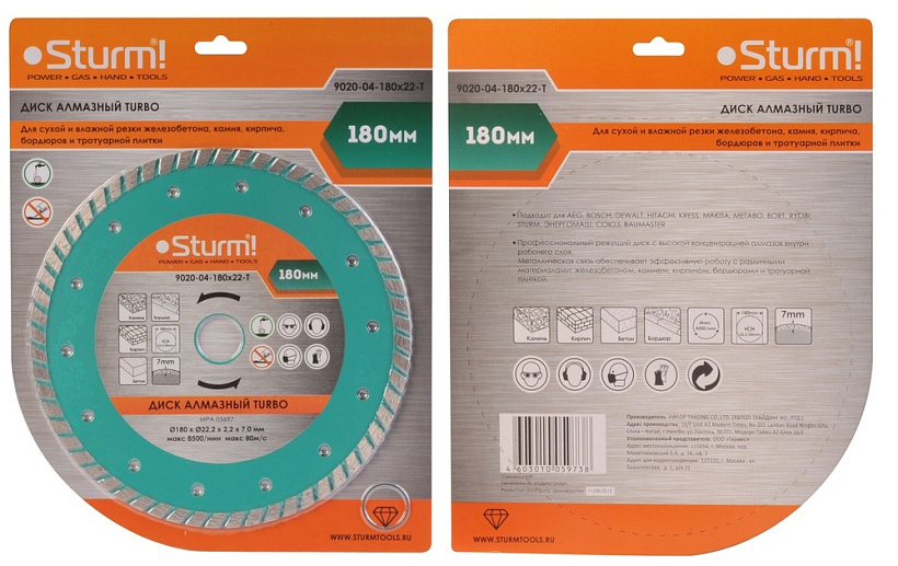 Диаметр диска (мм) 180