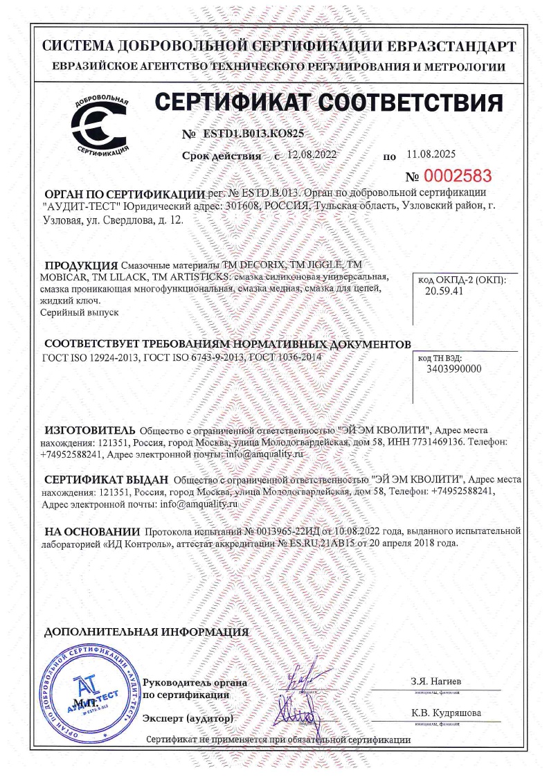 Многофункциональная проникающая смазка DECORIX® 210 мл предназначена для смазывания подвижных механизмов и деталей, а также для эффективной защиты от влаги и коррозии металлических поверхностей. Применяется для обработки шестерёнок, петель дверей, замков, цепей передач, слабонагруженных подшипников и т. п. при уходе за автомобилем, в быту и промышленности.