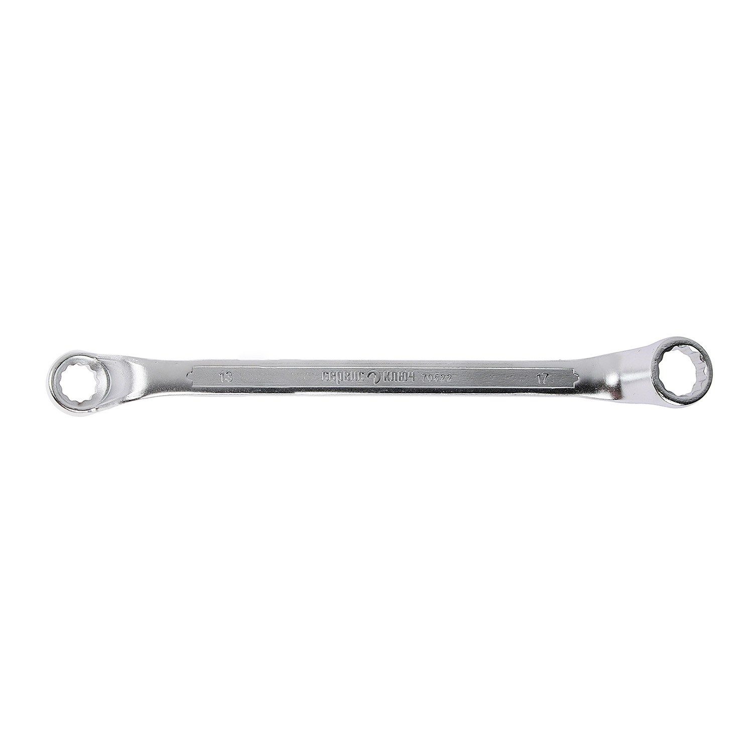 Двусторонний накидной ключ со смещением. Имеет на обоих концах 12-гранные накидные профили. Накидной профиль со смещением предоставляет более широкие возможности при работе в ограниченном пространстве.