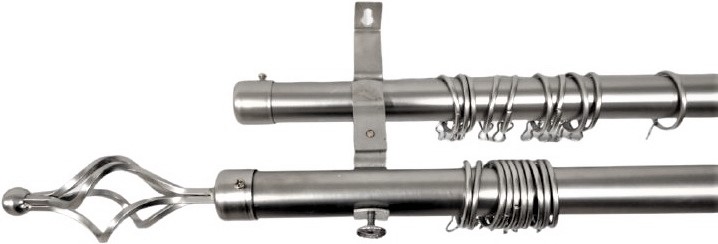 Комплектация: наконечники 2 шт, заглушки 2 шт,кронштейны 3 шт, кольца 48 шт,крючки 48шт,28мм и 25 мм труба