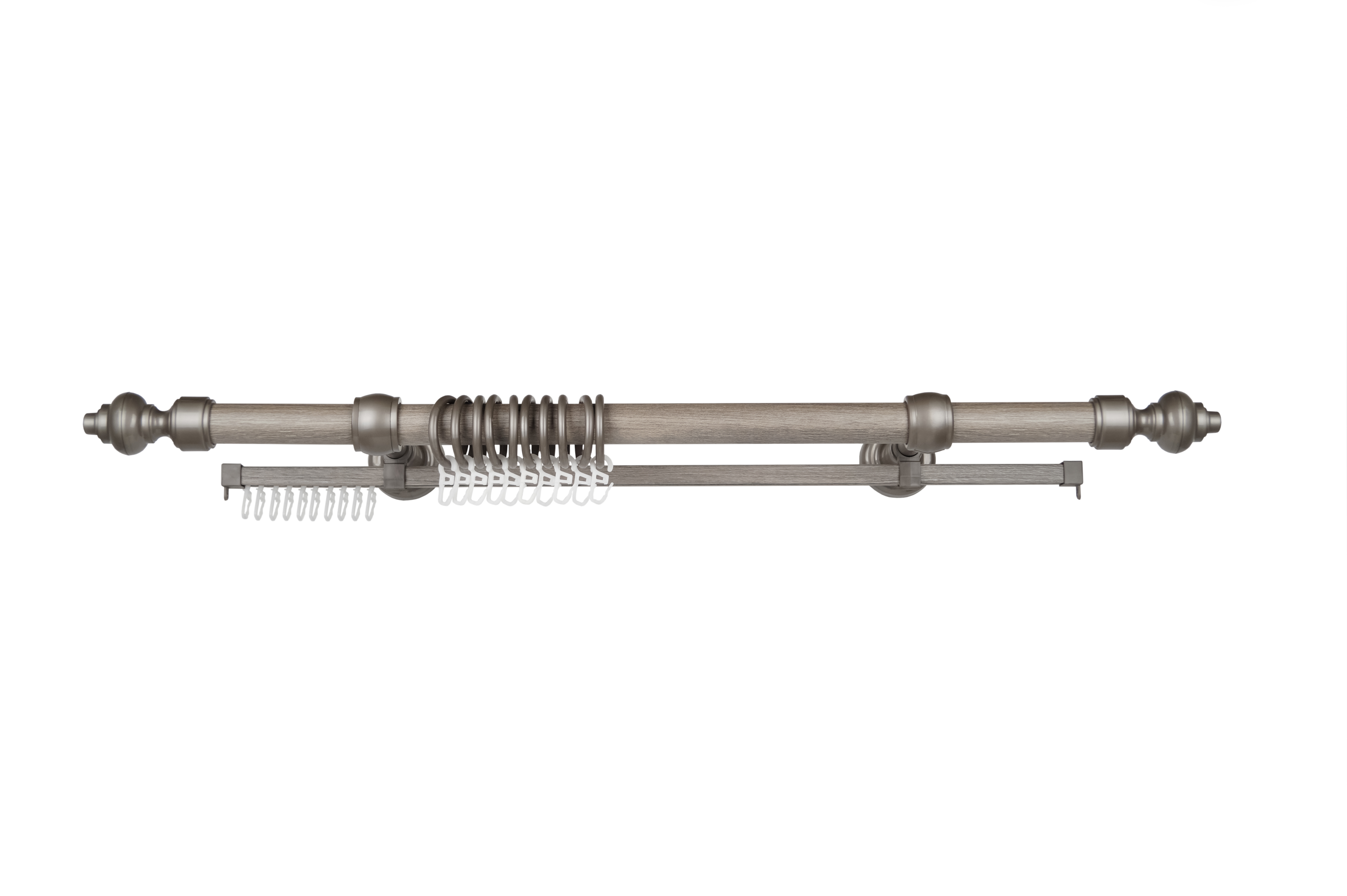 КОМПЛЕКТАЦИЯ: труба металлическая, покрытая пластиком фурнитура: наконечники и кольца пластиковые, крючки, кронштейны пластиковые комплект крепежа