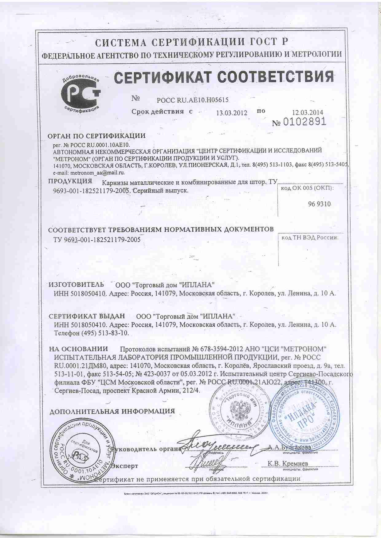 КОМПЛЕКТАЦИЯ: труба металлическая, покрытая пластиком фурнитура: наконечники и кольца пластиковые, крючки, кронштейны пластиковые комплект крепежа