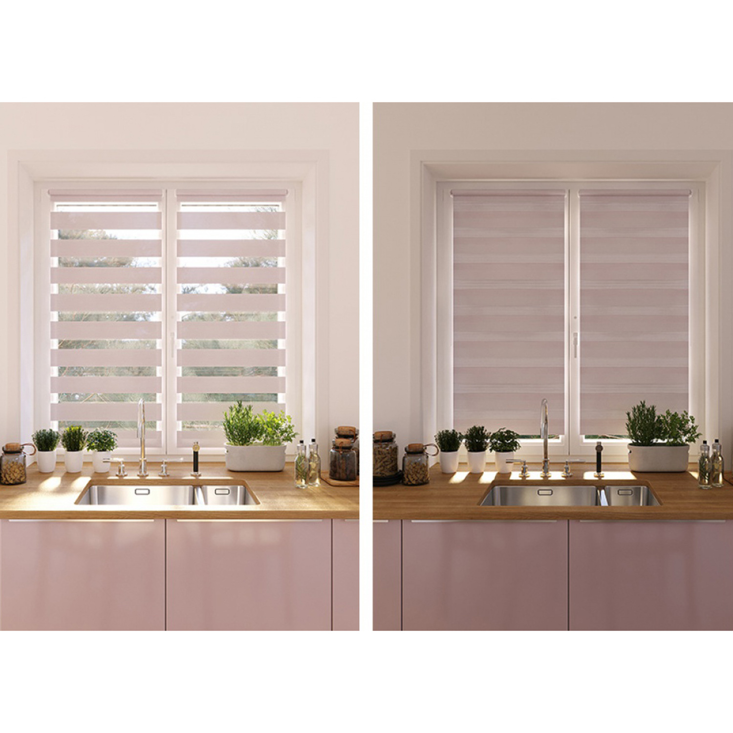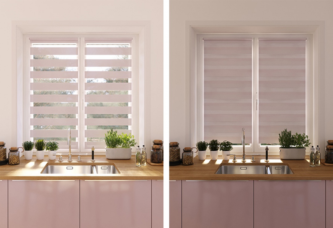 Рулонные шторы день-ночь защищают от очень яркого света и бликов, которые мешают смотреть телевизор или работать за компьютером. При этом ролета многофункциональна, имеет 2 режима использования: