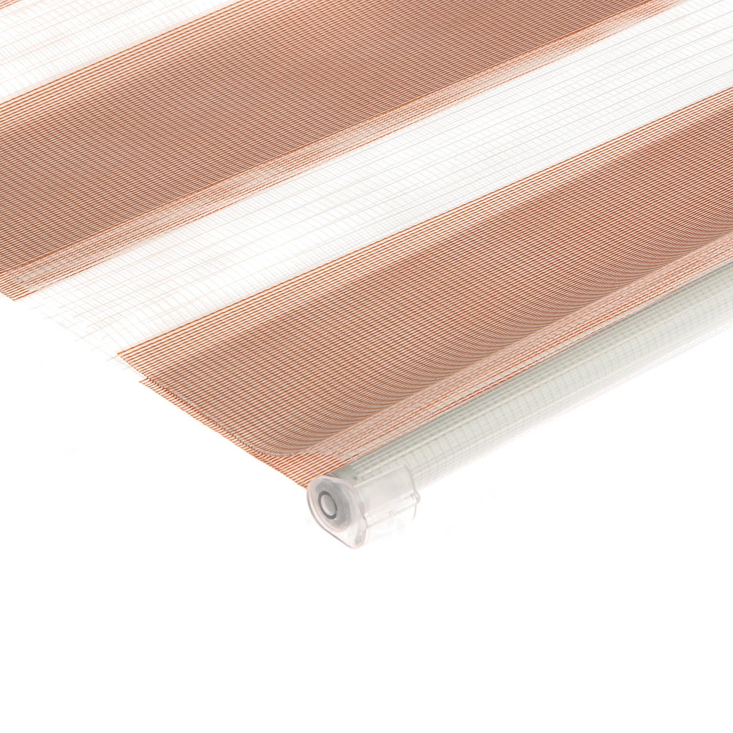 Режим «День». Полосы полотна чередуются: светопроницаемые и блокирующие свет. В этом случае в комнату попадает 50% света за счет чередования полос.