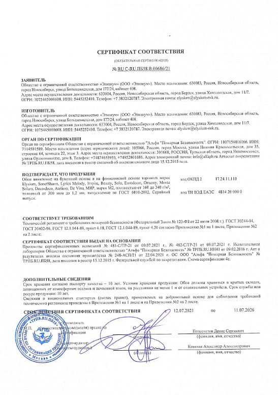 Тип номенклатуры Обои декоративные