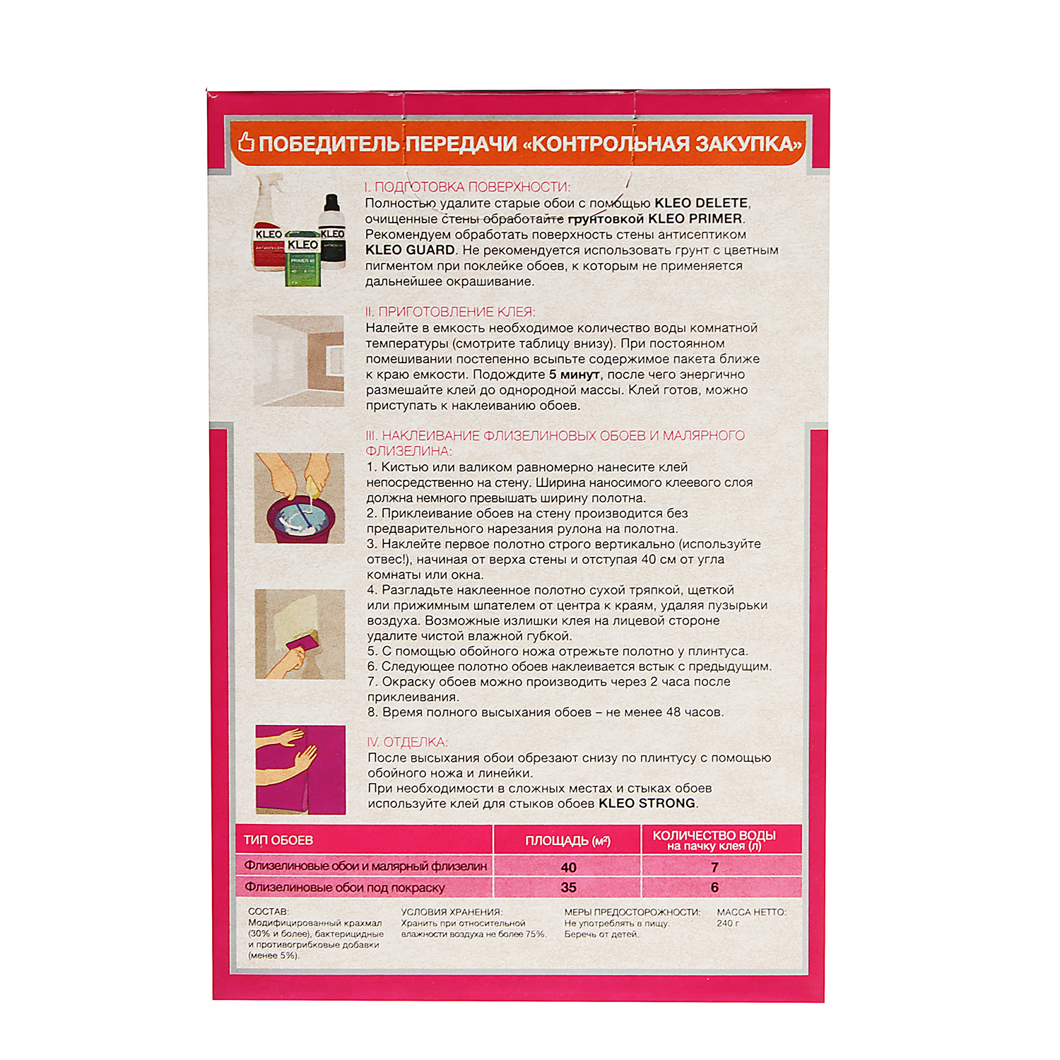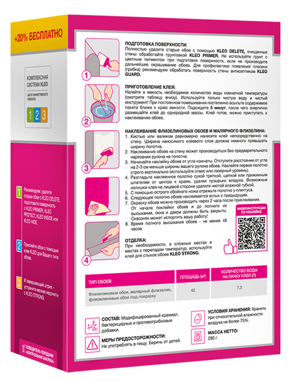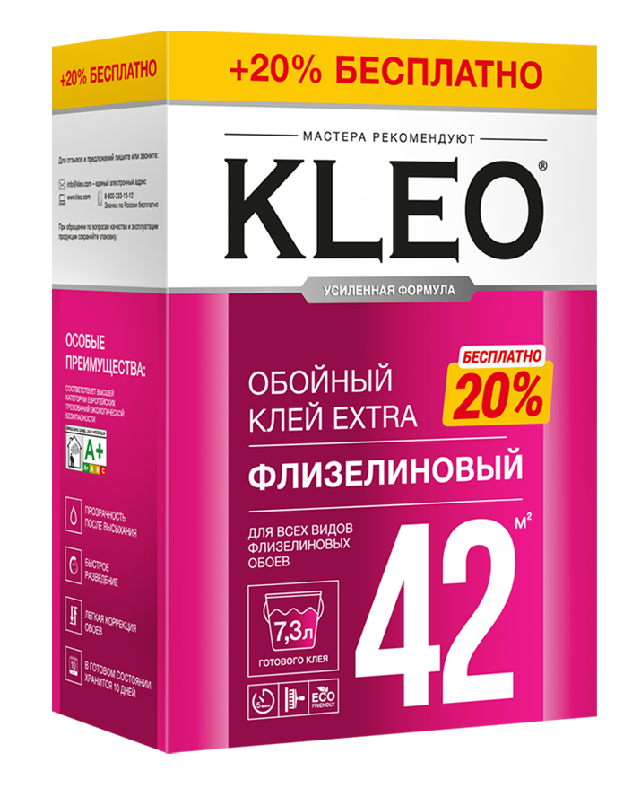 Клей для обоев флизелиновый 290г EXTRA 35 +20% KLEO 42м2 *1/20/1200