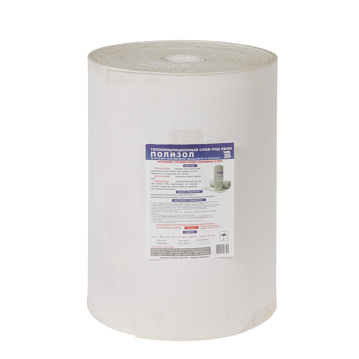 Изоляционная подложка под обои «Полизол» используется при утеплении внутренних стен в помещениях, а также холодных (северных) стен дачных помещений и бетонных стен, обладающих низкими теплозащитными свойствами. Обеспечивает идеальную поверхность для наклеивания обоев. Просто наклеивается (ремонт своими силами). Предотвращает появление конденсата и грибков на поверхности обоев Не боится сырости, не впитывает влагу. Нет необходимости в финишной штукатурке стен