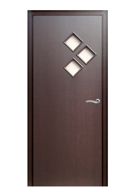 Каркас дверного полотна из плит МДФ 28*24, внутреннее заполнение полотна-сотовый заполнитель, закладной брусок под защелку 200*80, облицовочная панель выполнена из плит МДФ 3мм, декорированных финиш-пленкой пр-во Польша, Германия, меламиновая кромка, в цвет полотна, защищает торцы полотна, остекление-матовое стекло, обрамленное багетом