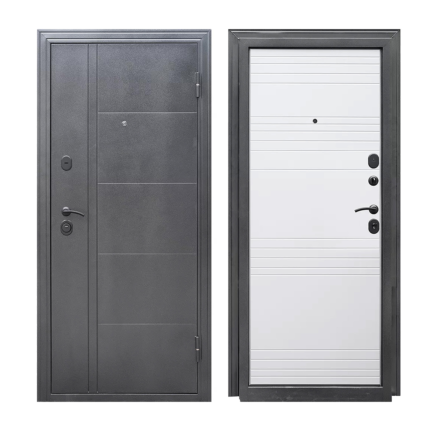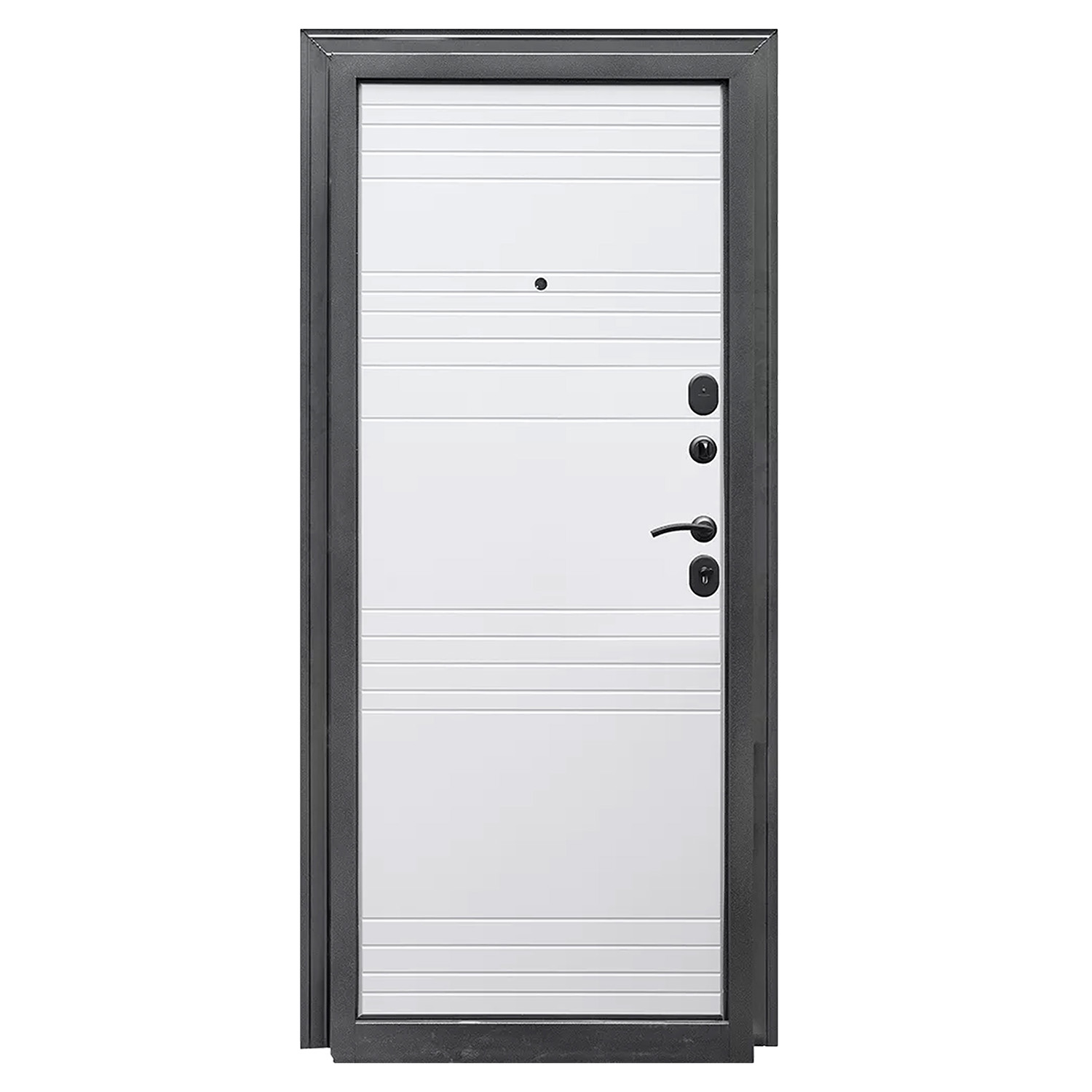 Предназначена для установки в жилых и общественных зданиях в качестве входной двери внутри помещения. Полотно изготовлено из стали. С внутренней стороны облицовано фрезерованной МДФ-панелью толщиной 8 мм. Стальной лист 1 мм с атмосферостойким порошковым покрытием цвета "антик серебро"; панель МДФ, толщиной 8 мм в цвете "белый софт"; наполнение базальтовая плита.