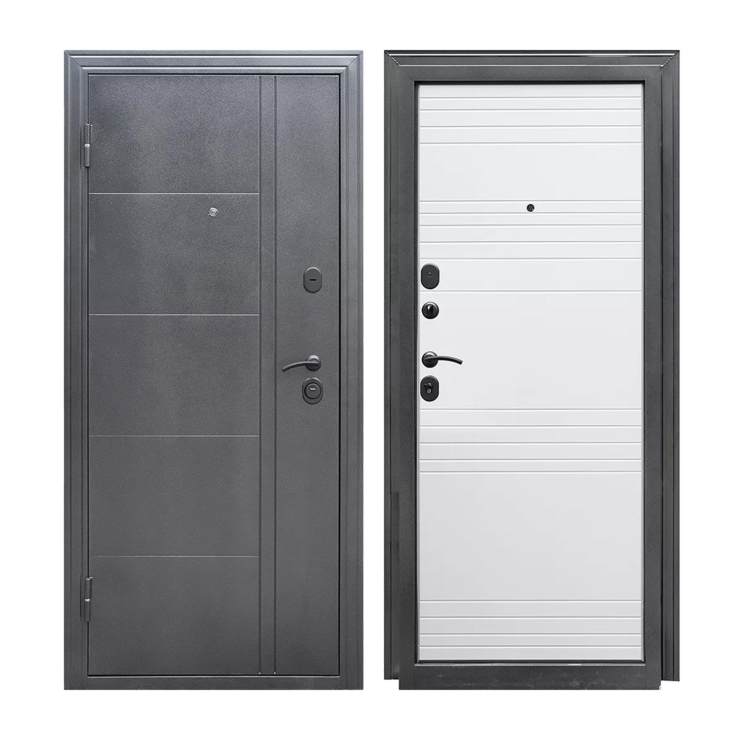 Предназначена для установки в жилых и общественных зданиях в качестве входной двери внутри помещения. Полотно изготовлено из стали. С внутренней стороны облицовано фрезерованной МДФ-панелью толщиной 8 мм. Стальной лист 1 мм с атмосферостойким порошковым покрытием цвета "антик серебро"; панель МДФ, толщиной 8 мм в цвете "белый софт"; наполнение базальтовая плита.