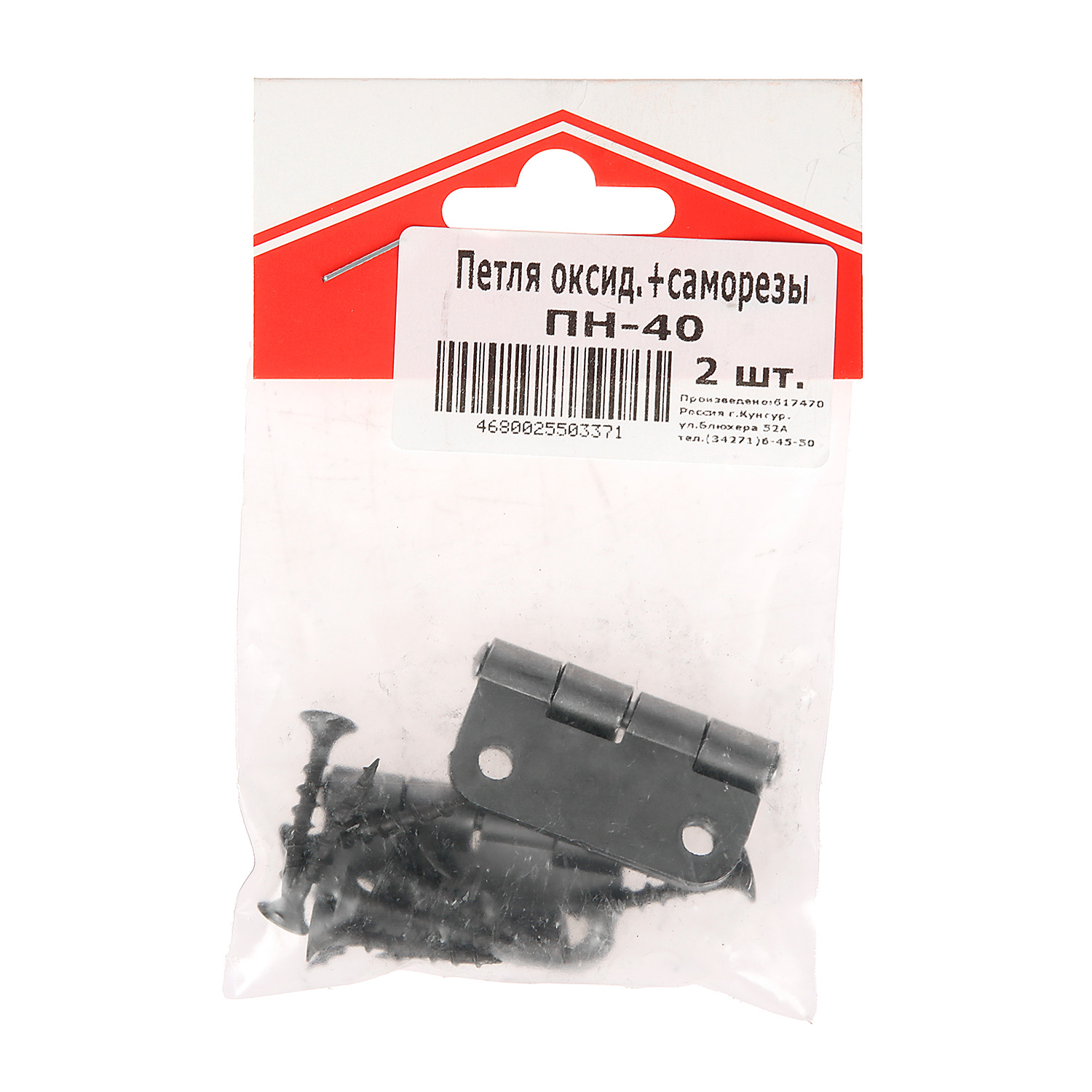 Петля накладная 40мм б/покрытия (комплект 2 шт+саморезы) ДомоСтрой *10/100