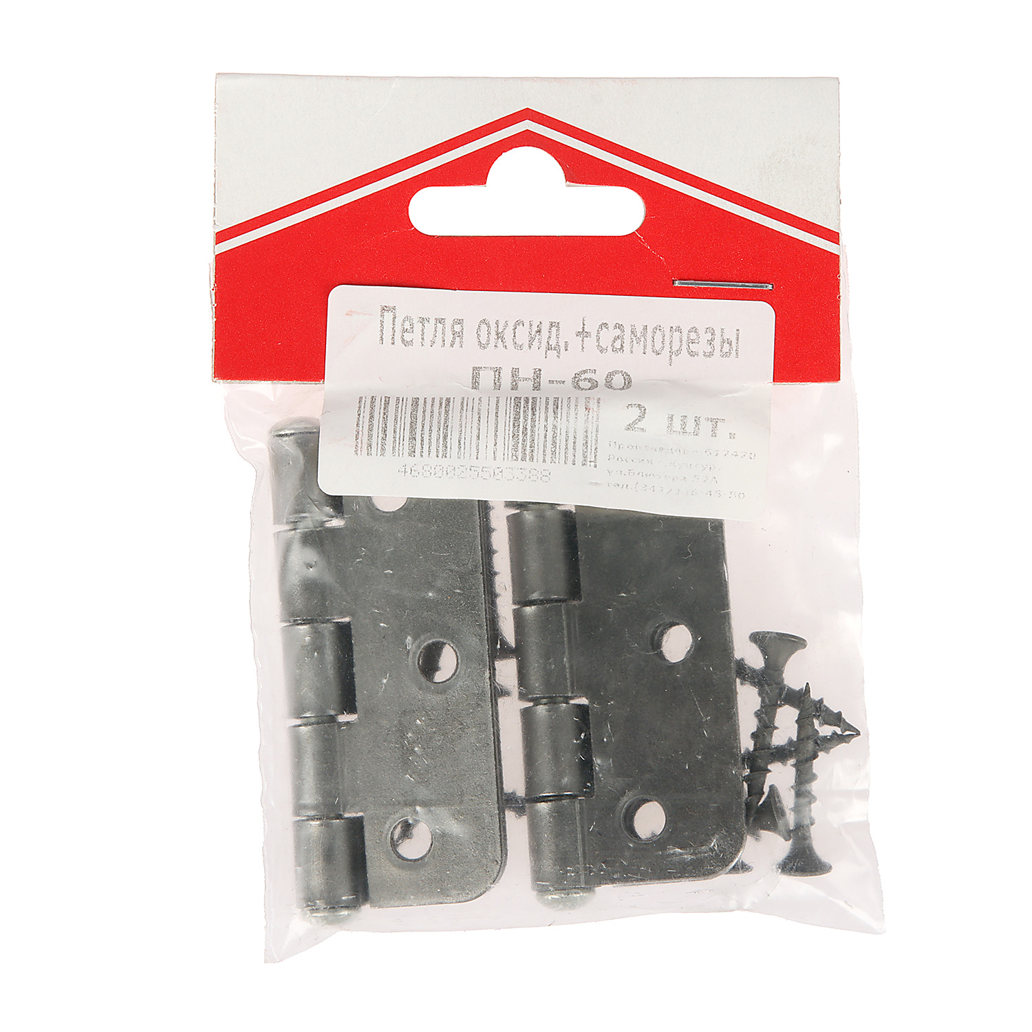 Петля накладная 60мм б/покрытия (комплект 2 шт+саморезы) ДомоСтрой *10/100