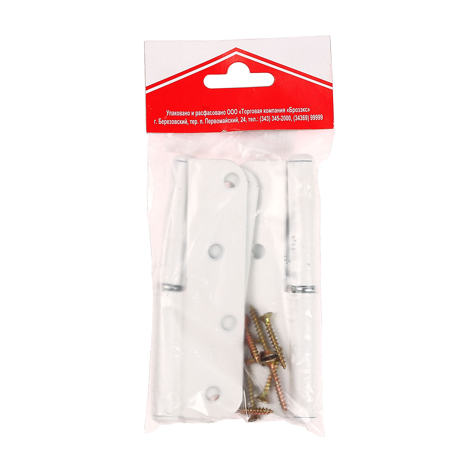 Петля накладная полимер.110мм белая ЛЕВАЯ (комплект 2 шт+саморезы) ДомоСтрой *10/150