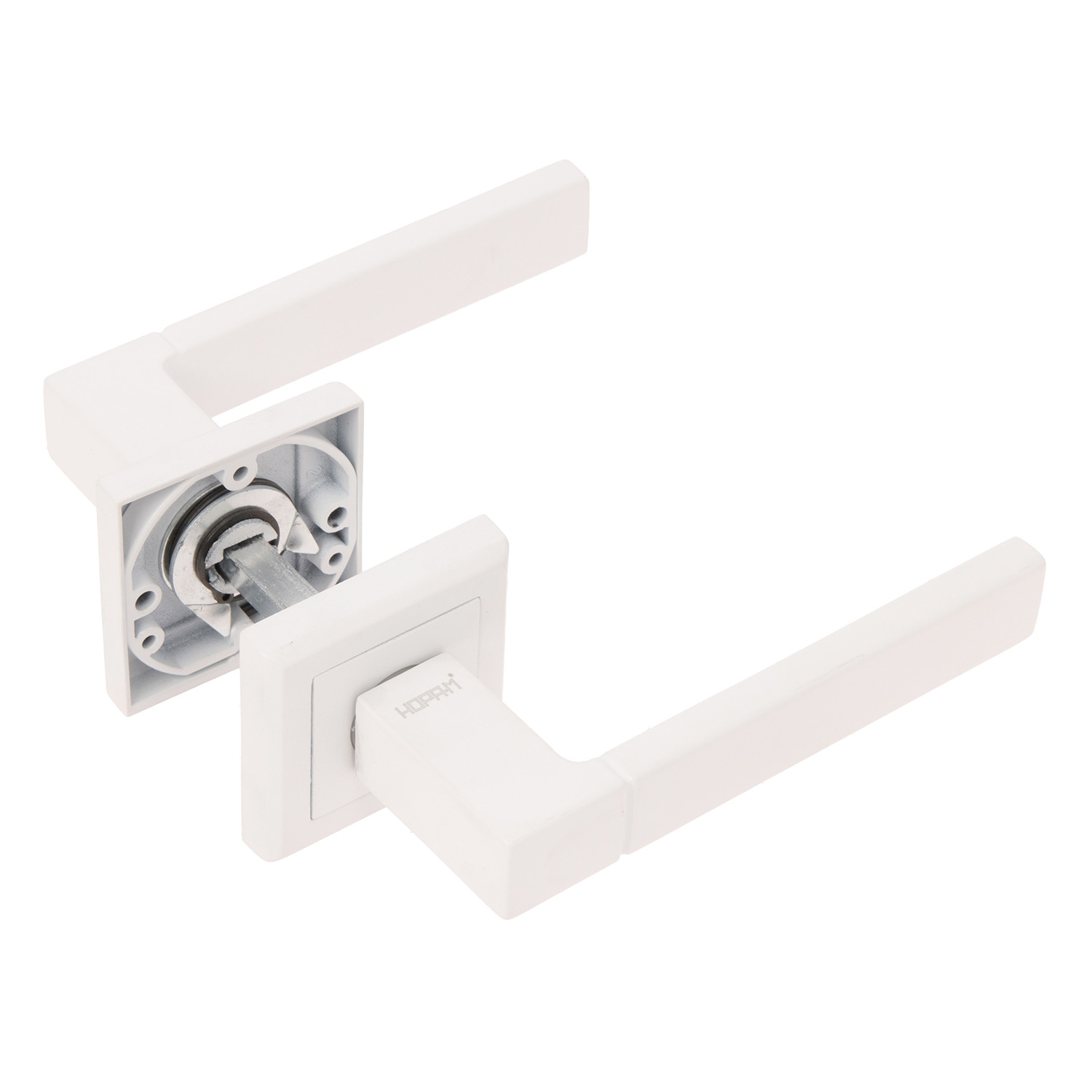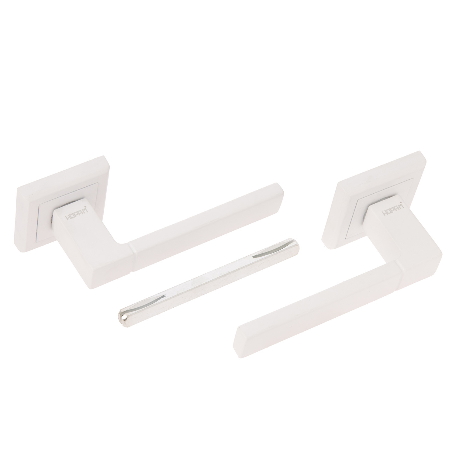 В комплекте с ручкой поставляется разрезной соединительный квадрат, имеющий длину 100мм и сечении 8*8мм, шурупы для крепежа ручки на дверном полотне, соединительные стяжные винты, а также дополнительные винты для фиксации ручек и декоративной части розетки.