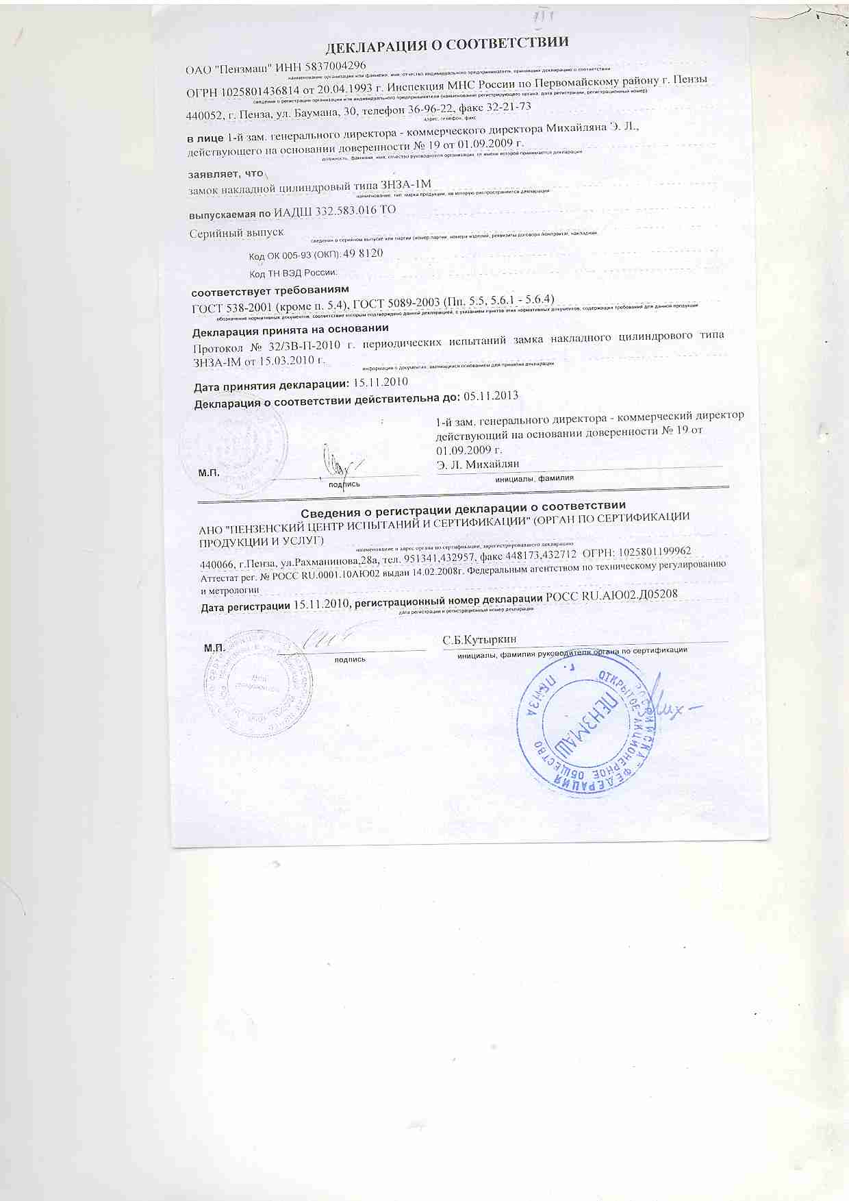 В комплекте: замок Пензмаш ЗНЗ-1АМ (ЗНШ) накладной, цилиндровый механизм, крепежная планка, накладка на скважину, ответная планка, перфорированные ключи (4 шт.), крепеж.