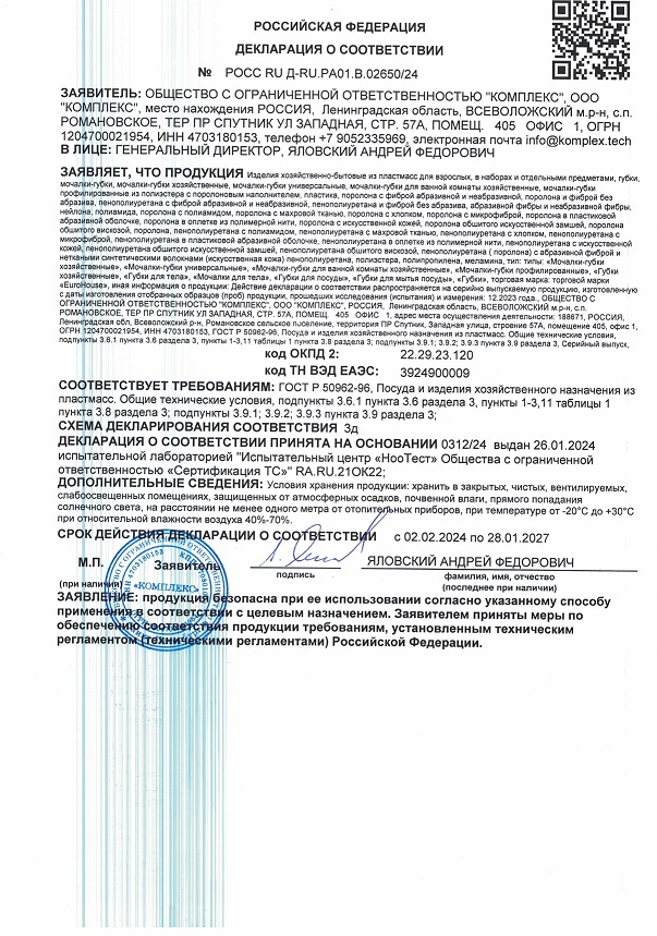 Губка не требует замены в течении долгого слоя, так как выполнена из высококачественного материала. Изделие легко сушится и сохраняет первоначальную форму, предотвращая расслоение волокон.