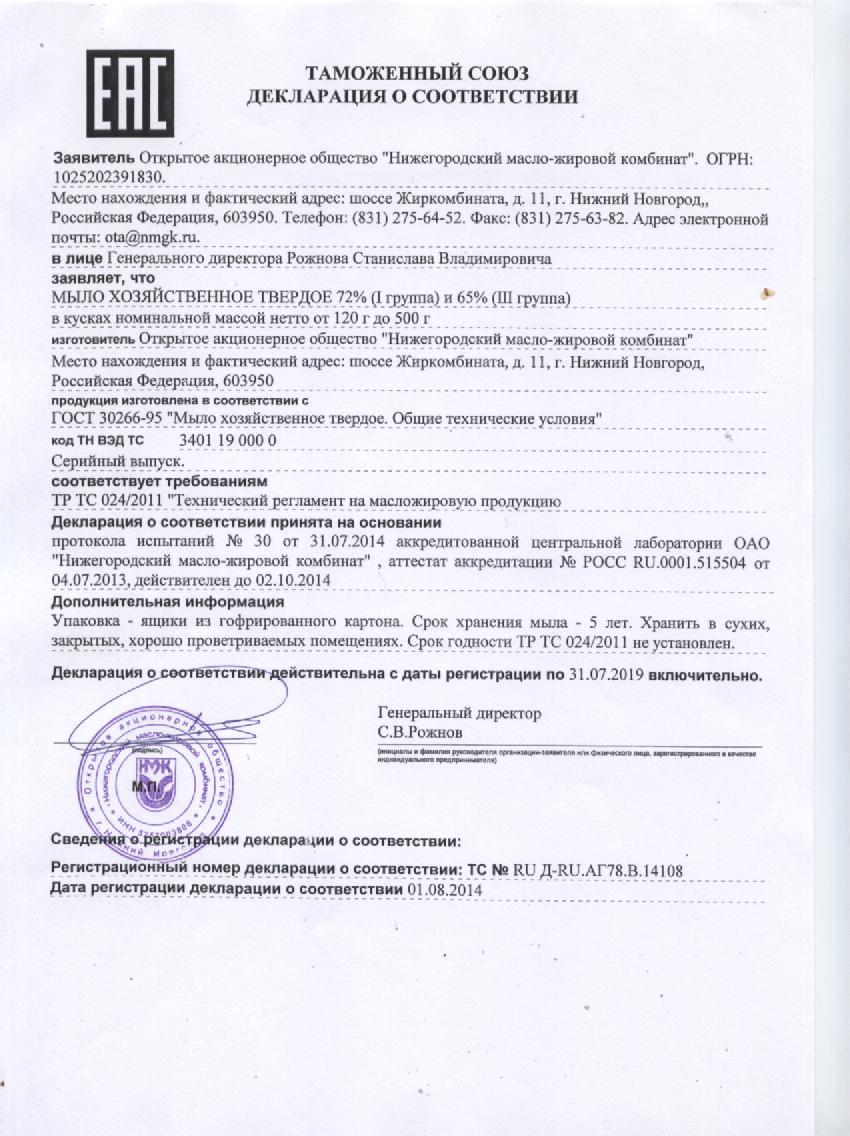 Хозяйственное мыло 65% для санитарно-гигиенических целей, для стирки, мытья посуды и т.д.