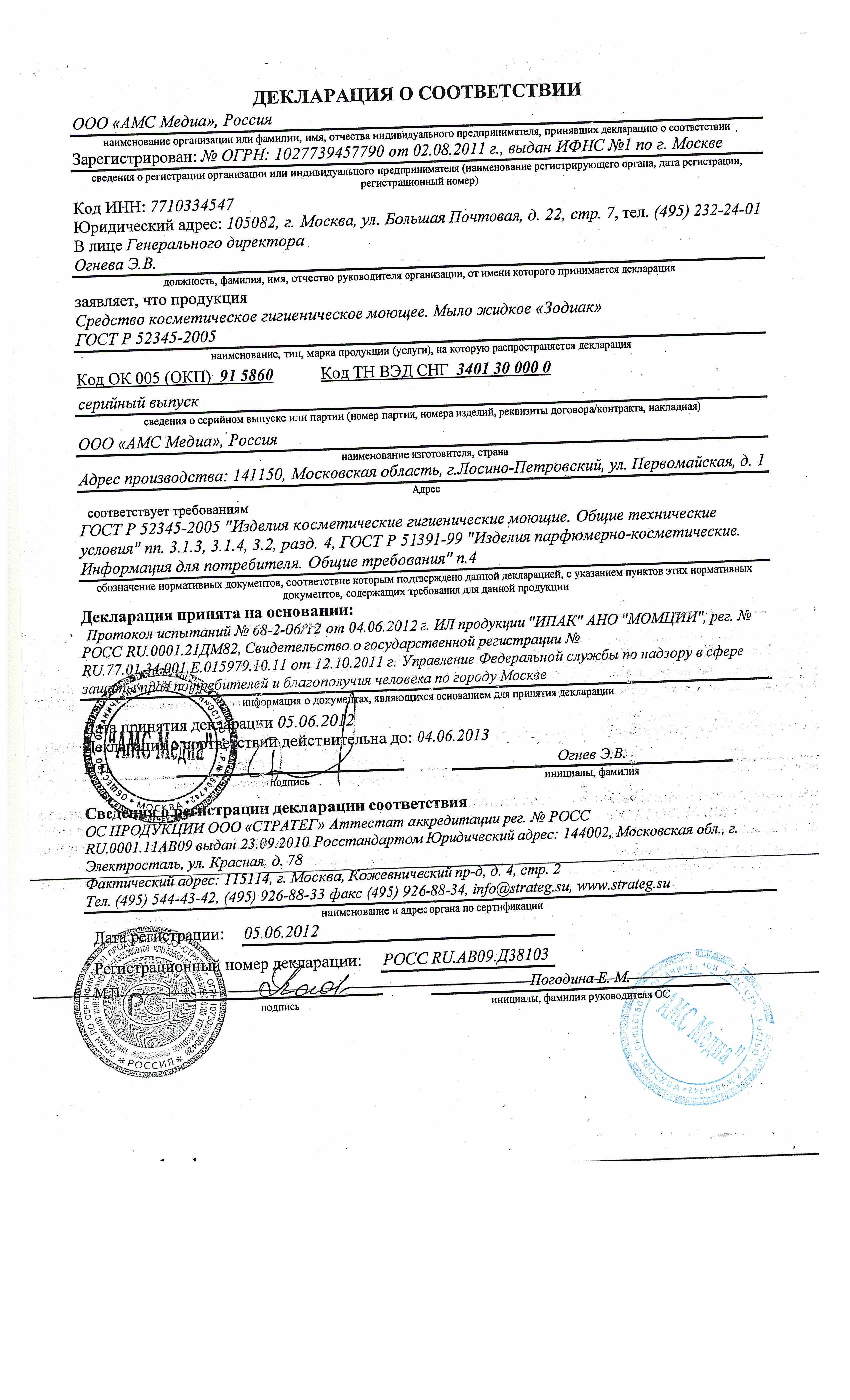 Мыло жидкое 2л ЗОДИАК в ассортименте (К09-1/09-2/09-3)) (Москва) *6