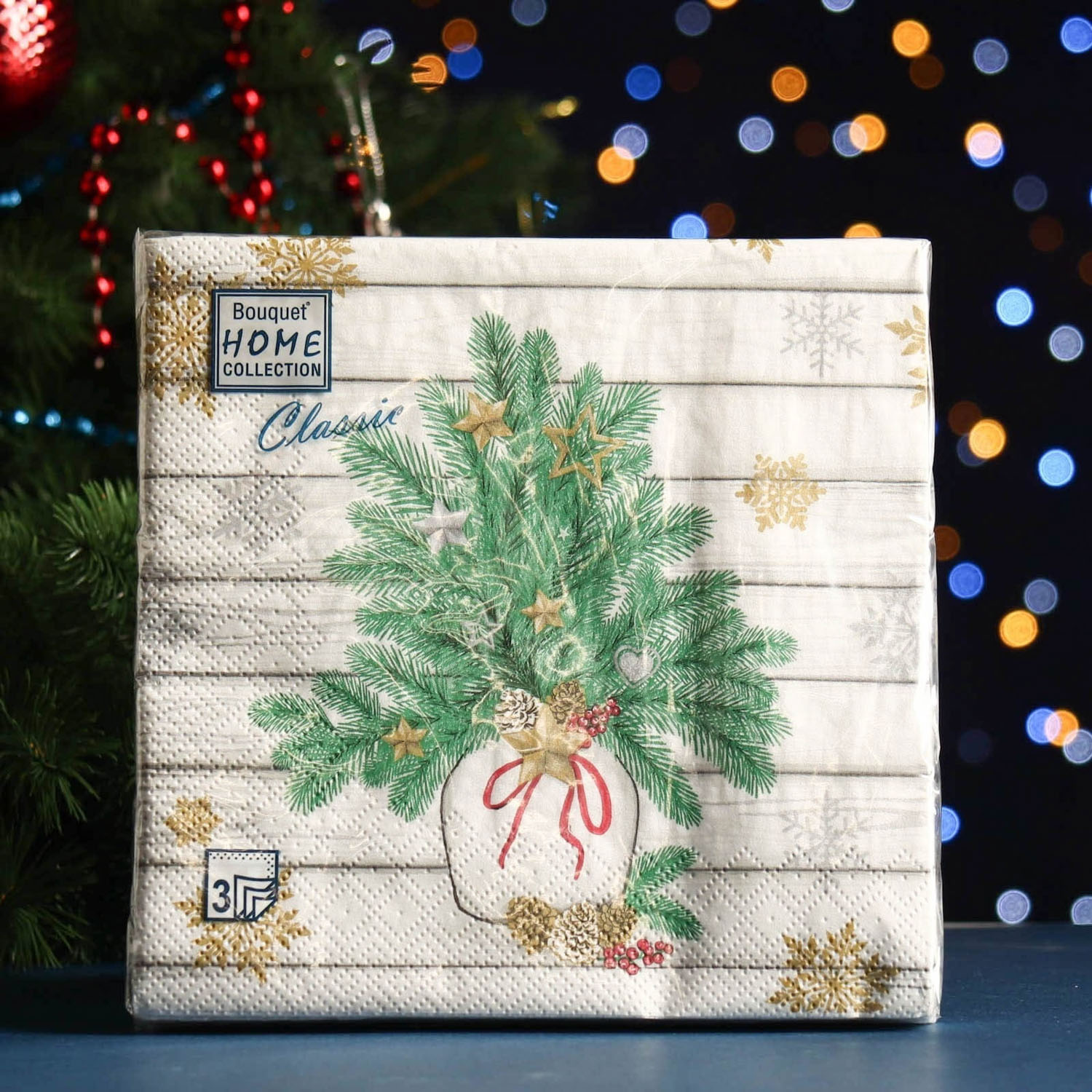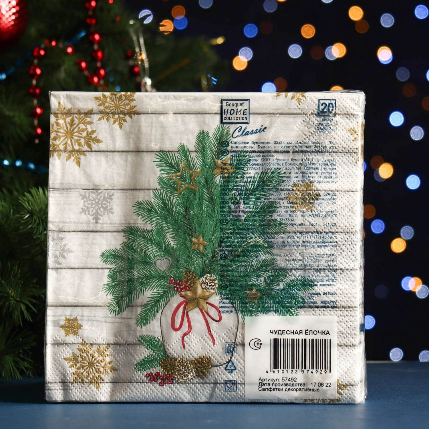 Салфетки бумажные 3сл 33*33см 20шт НОВЫЙ ГОД Чудесная елочка *12