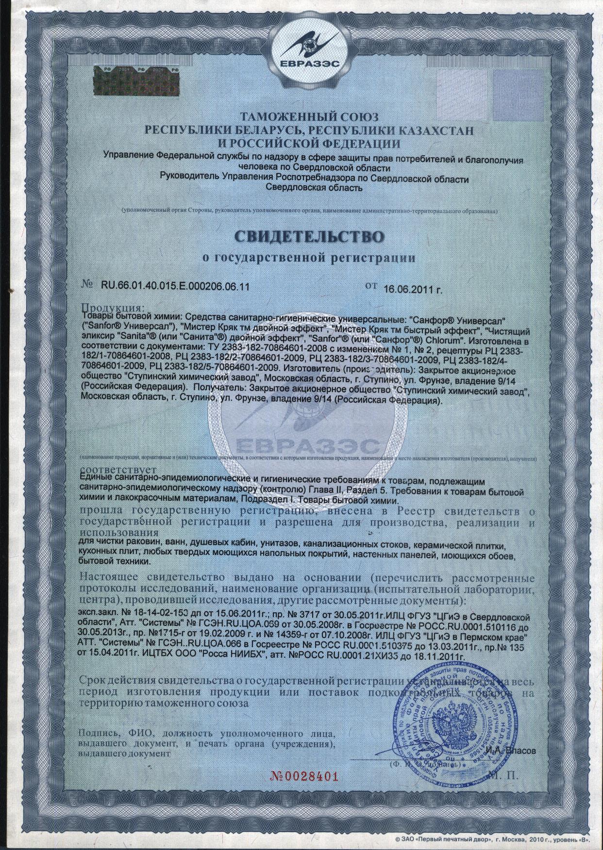 Средство для очистки канализационных труб "Sanfor" быстро устранит даже очень сильные засоры в канализационных стоках. Результат достигается уже за 5 минут.