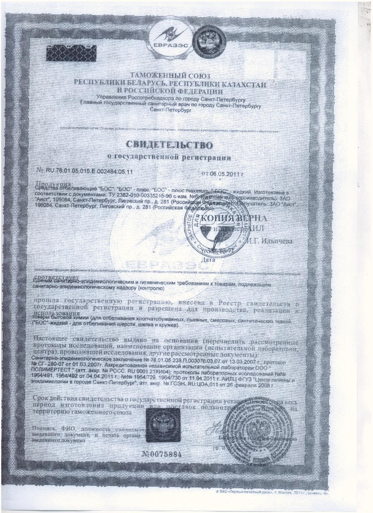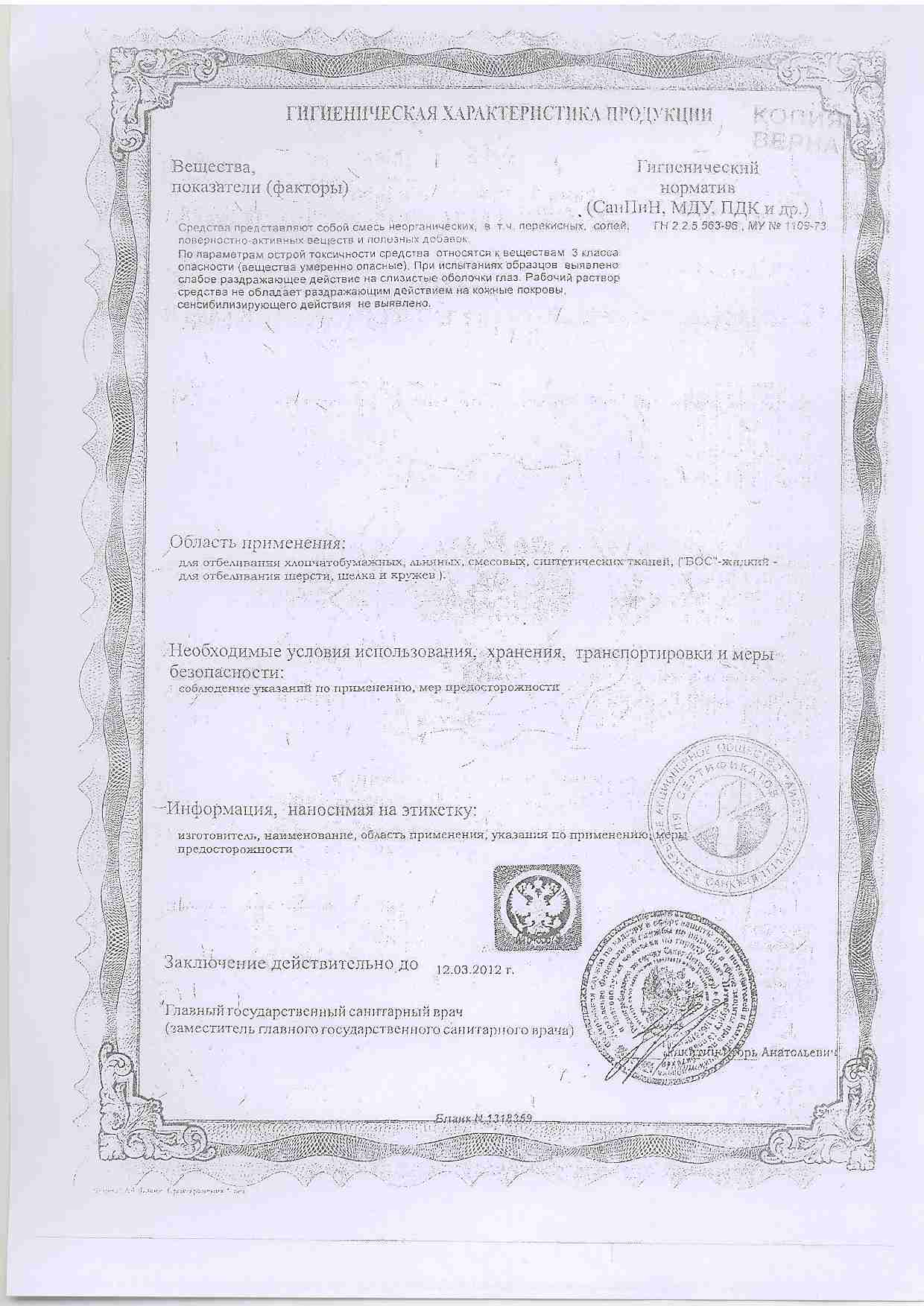 Сертификат Не подлежит сертификации