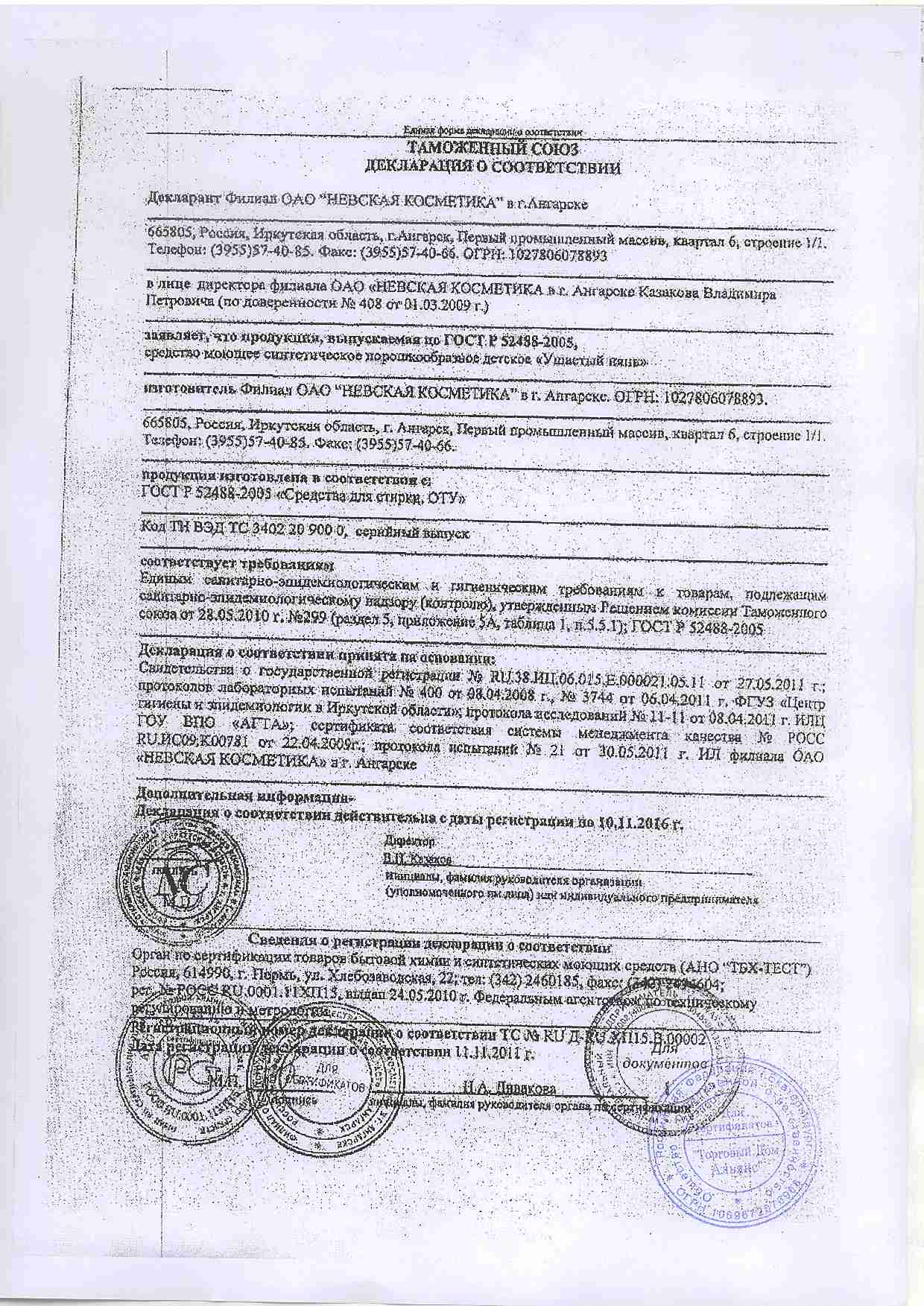 Вид средства Порошок