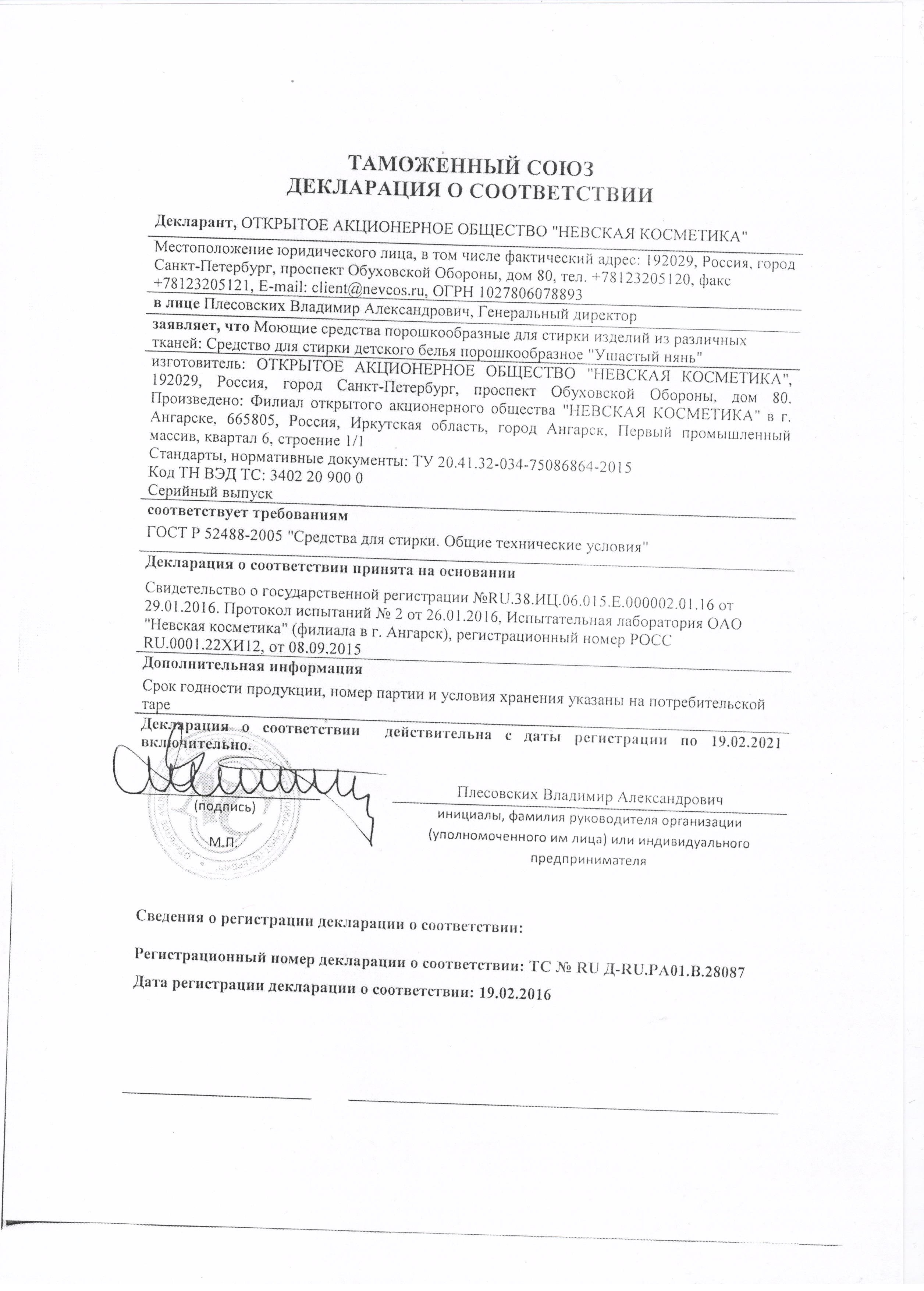 Стир.порошок УШАСТЫЙ НЯНЬ Детский 6,0кг (01015) Невск. косм.) *1/3
