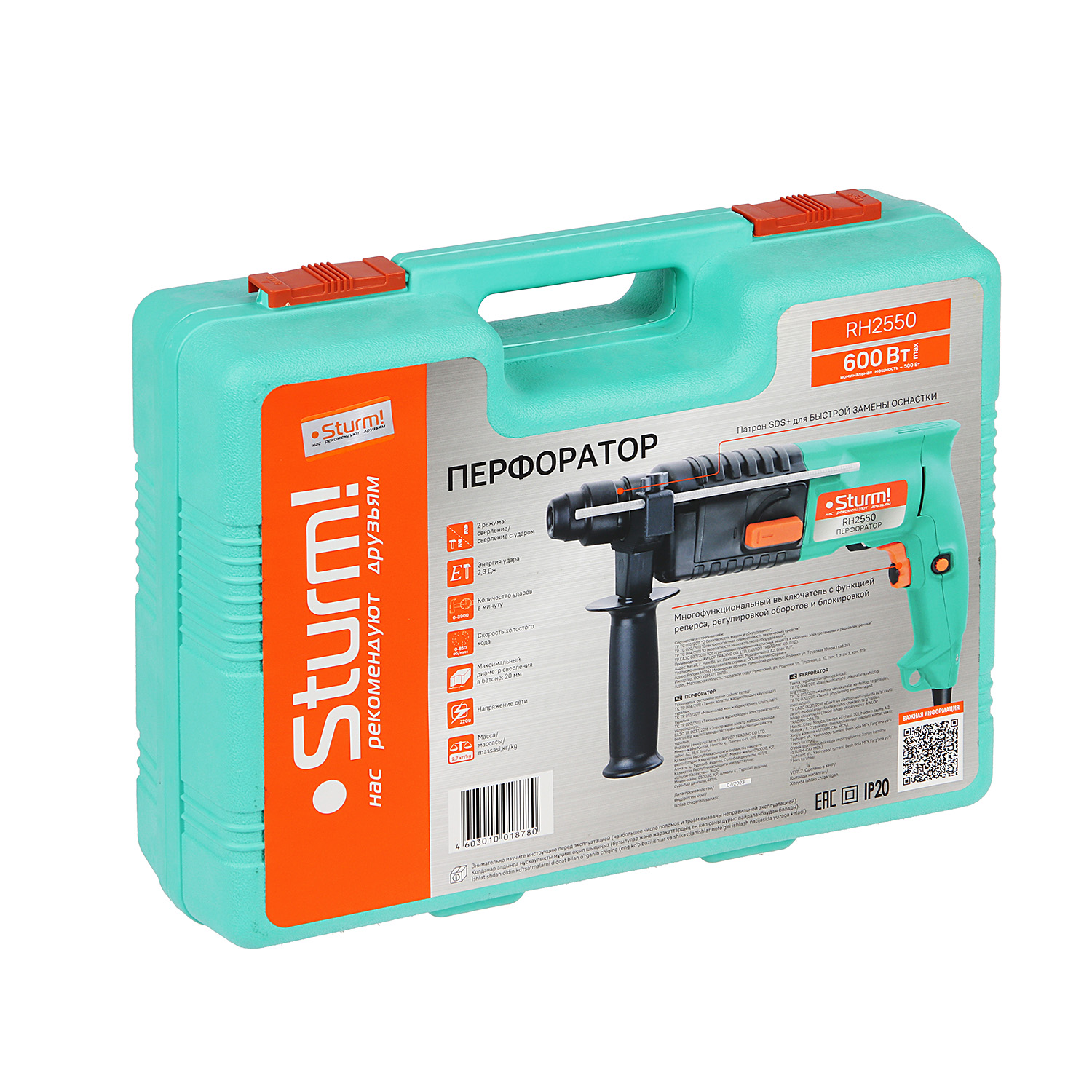 Перфоратор Sturm RH2550 - делает отверстия в стали, пластмассе, дереве и бетоне. Благодаря мощному ударному механизму можно выполнять любые сверлильные работы по бетону. За счет удобного расположения переключателя осуществляется легкий выбор нужного режима работы перфоратора.