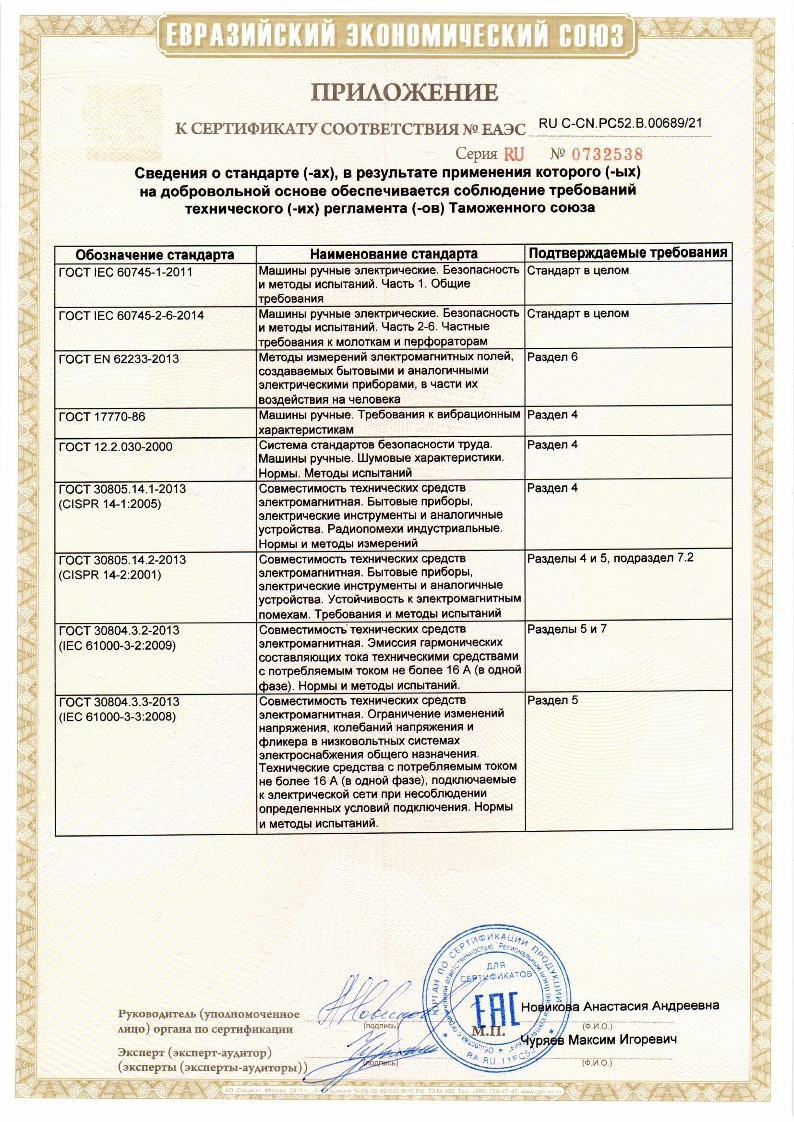 Класс безопасности машины (по ГОСТ Р МЭК 60745-1): II