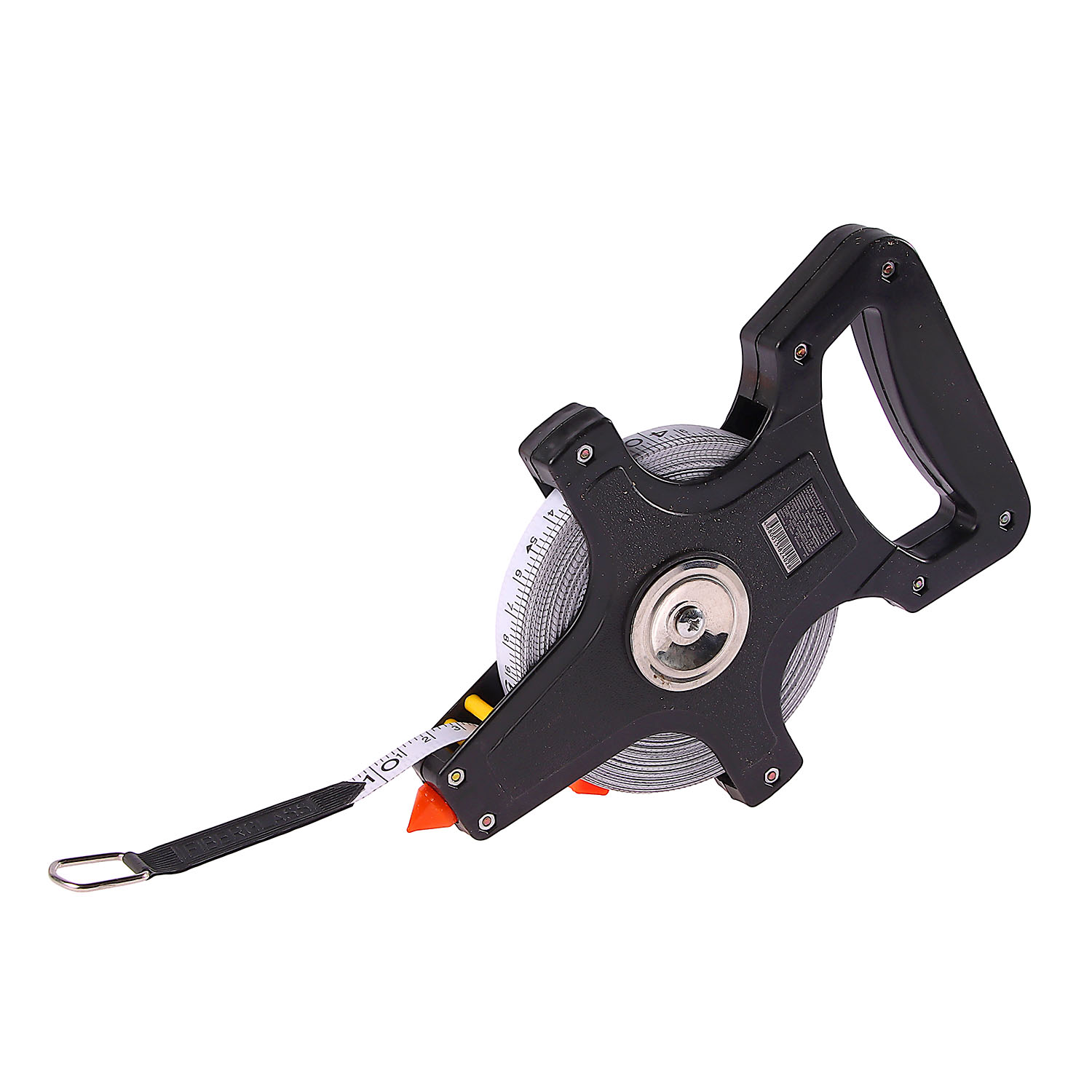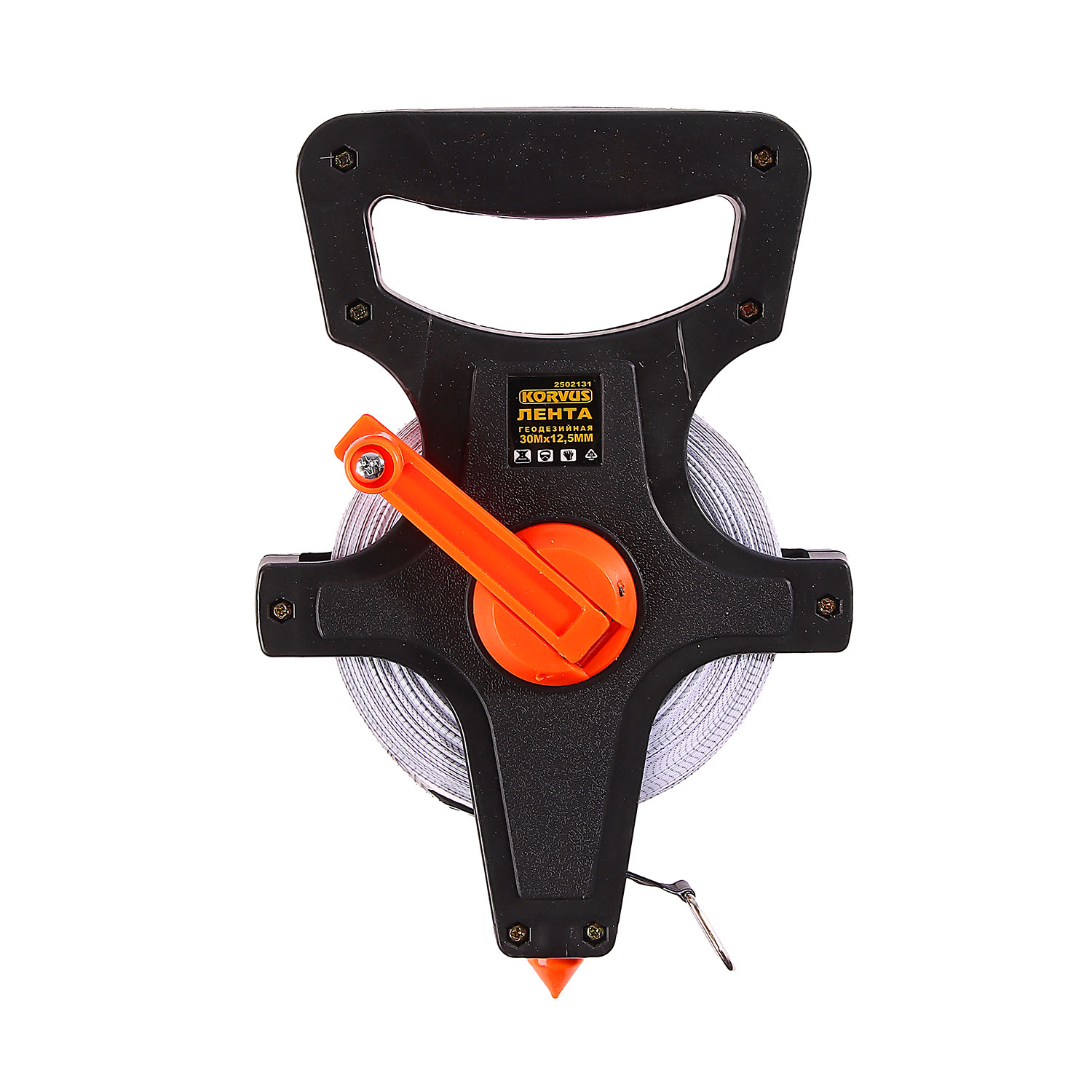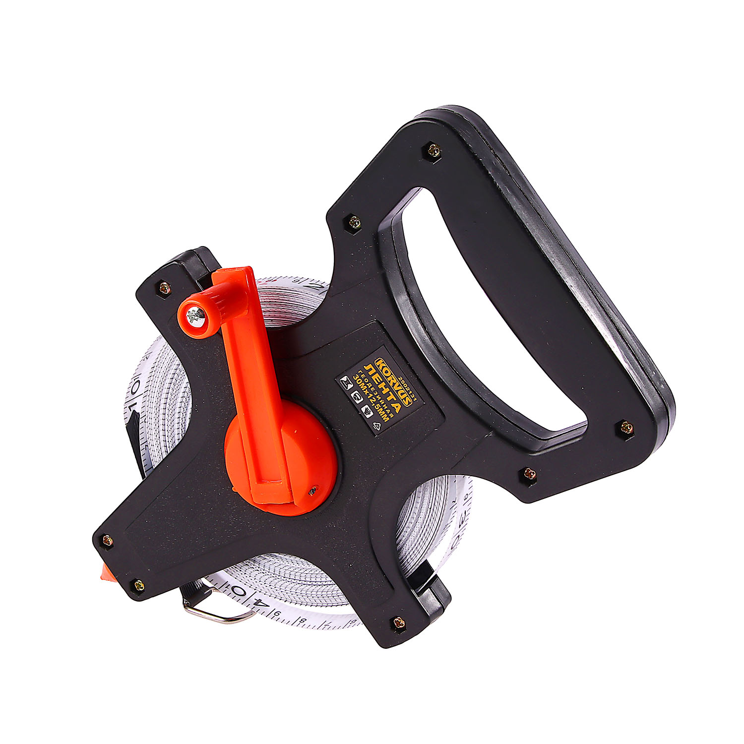 Открытый корпус ленты имеет удобную рукоятку для переноски и металлический штырь для фиксирования начала отсчета.