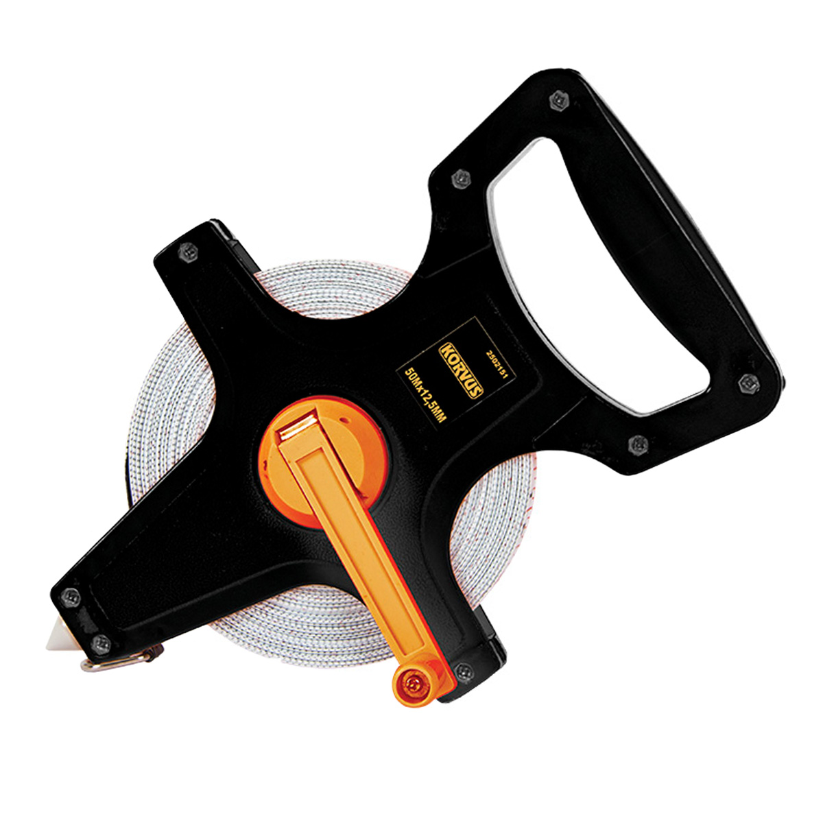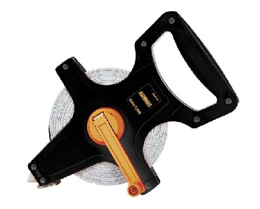 Открытый корпус ленты имеет удобную рукоятку для переноски и металлический штырь для фиксирования начала отсчета.