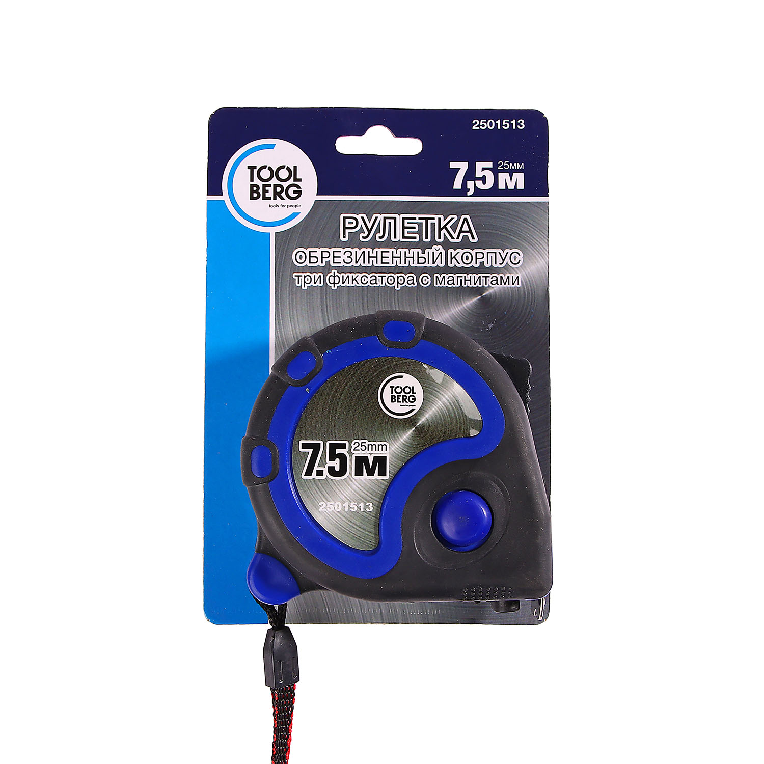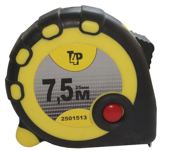 Рулетка 7,5м х25мм резино-пластик. корпус стальная лента фиксатор магнит арт.2501513 T4P *1/12/60