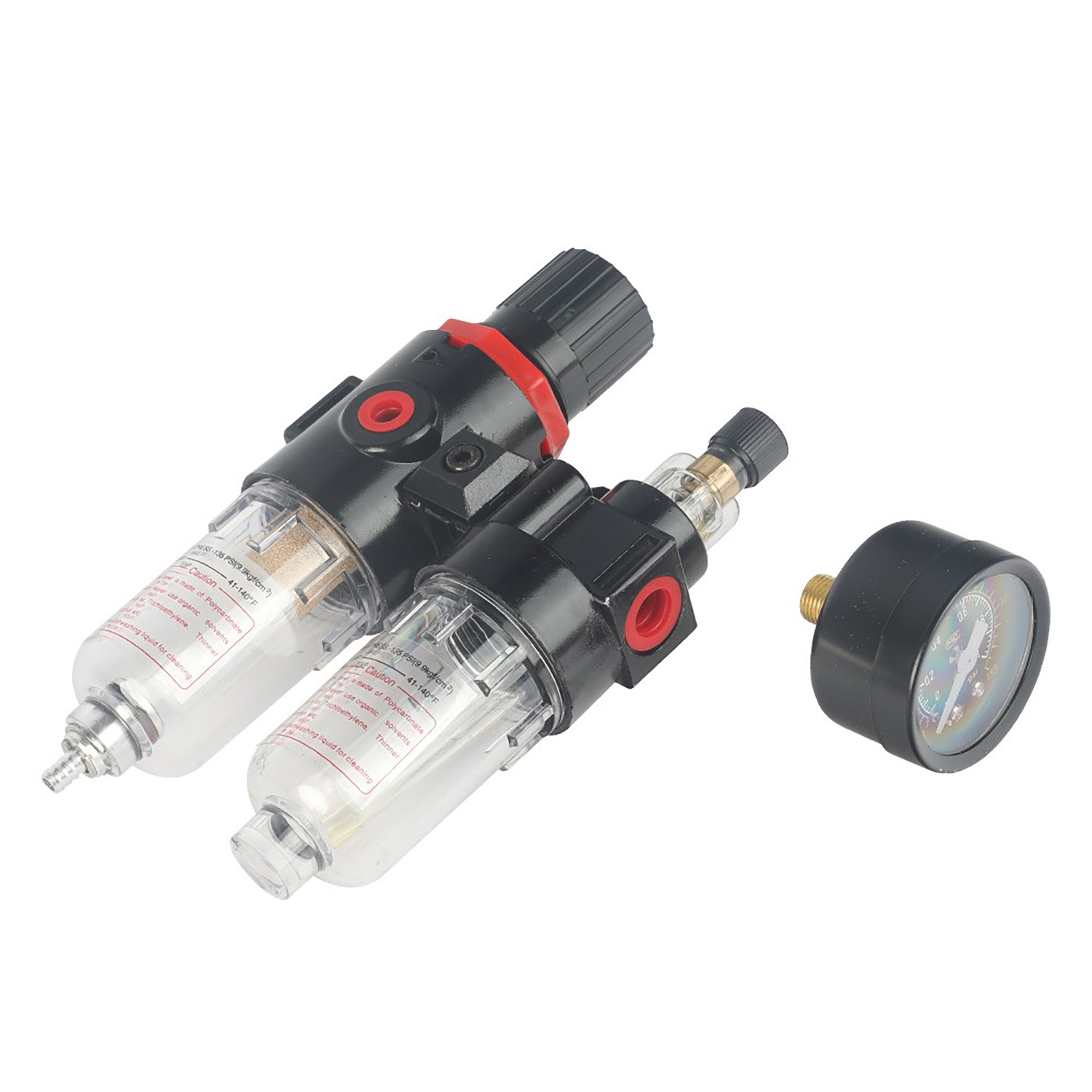 Регулятор давления применяется для контроля и фиксации давления в пневмосистеме. Уровень давления регулируется с помощью вентиля и отображается на манометре.