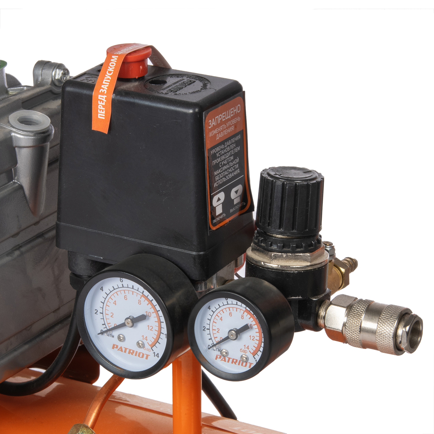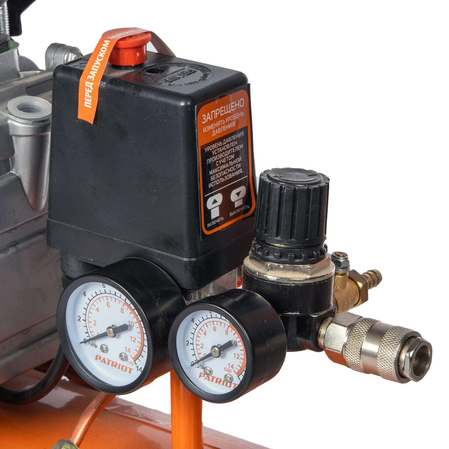Аппарат оснащен двумя манометрами: один показывает давление внутри ресивера, другой - давление, подаваемое на пневмоинструмент.