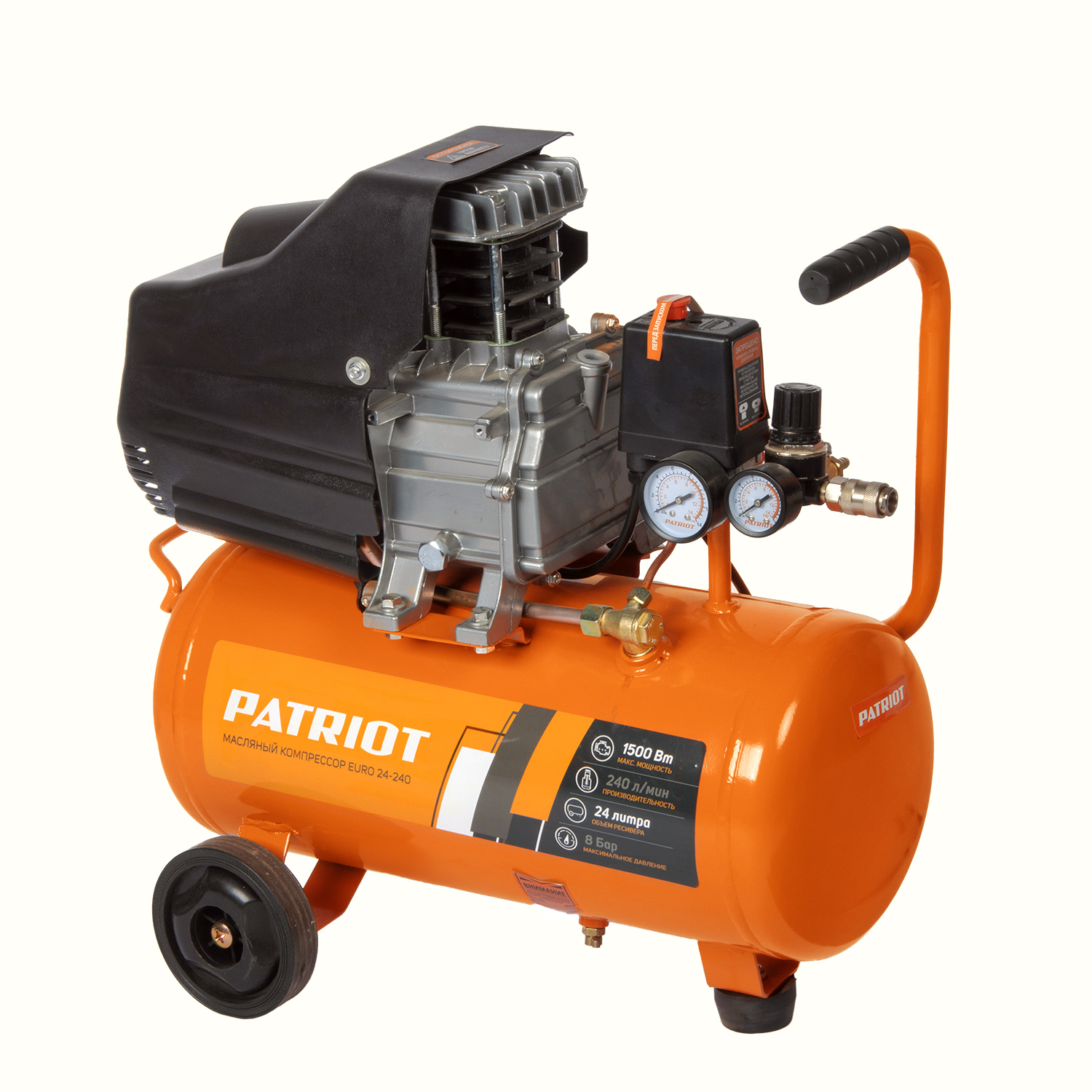 Компрессор PATRIOT EURO 24/240 525306365 - мобильный аппарат, который предназначен для нагнетания сжатого воздуха в различный пневмоинструмент.