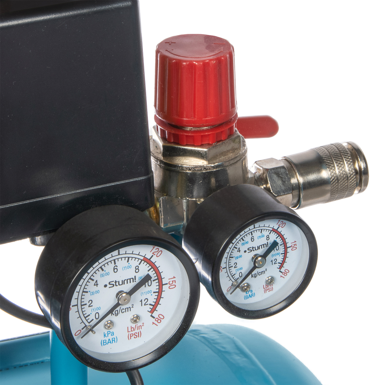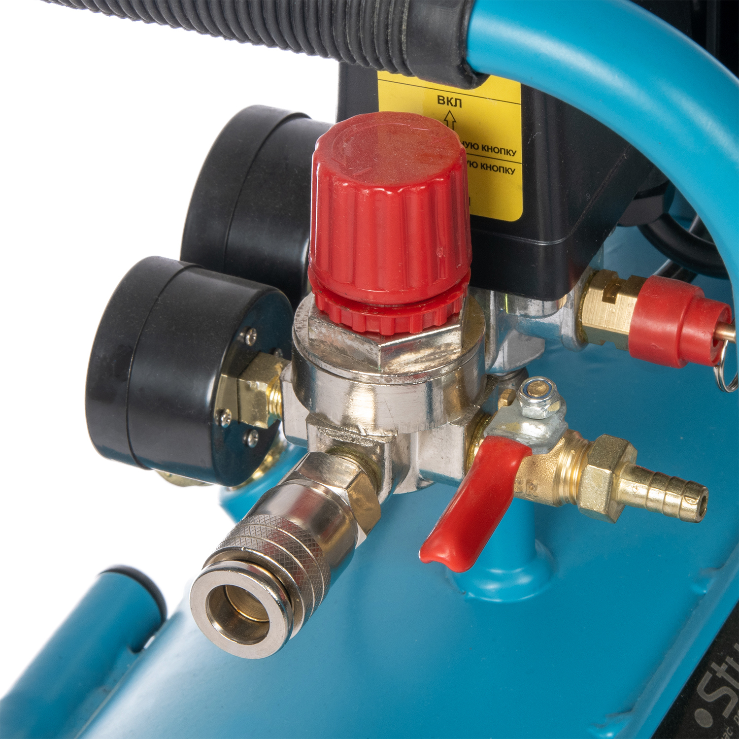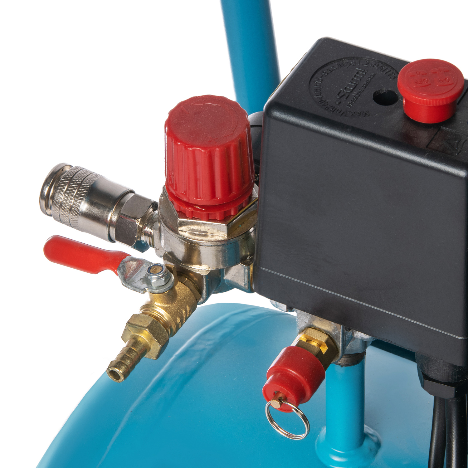 Реле и регулятор давления с манометрами на входе и выходе позволяют создавать давление максимально приближенное к требуемому потребителем, а также наглядно наблюдать и контролировать возможные перепады или недостатки компрессии.