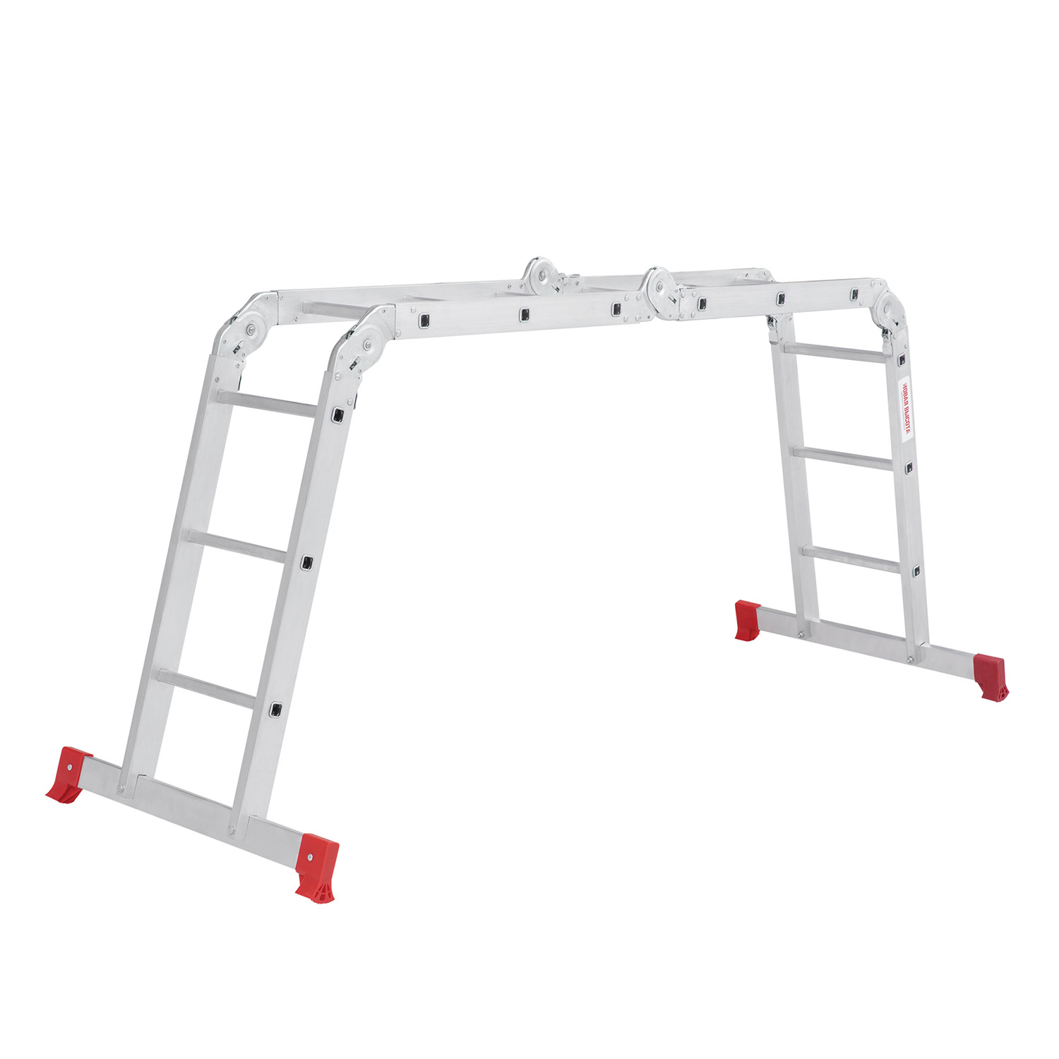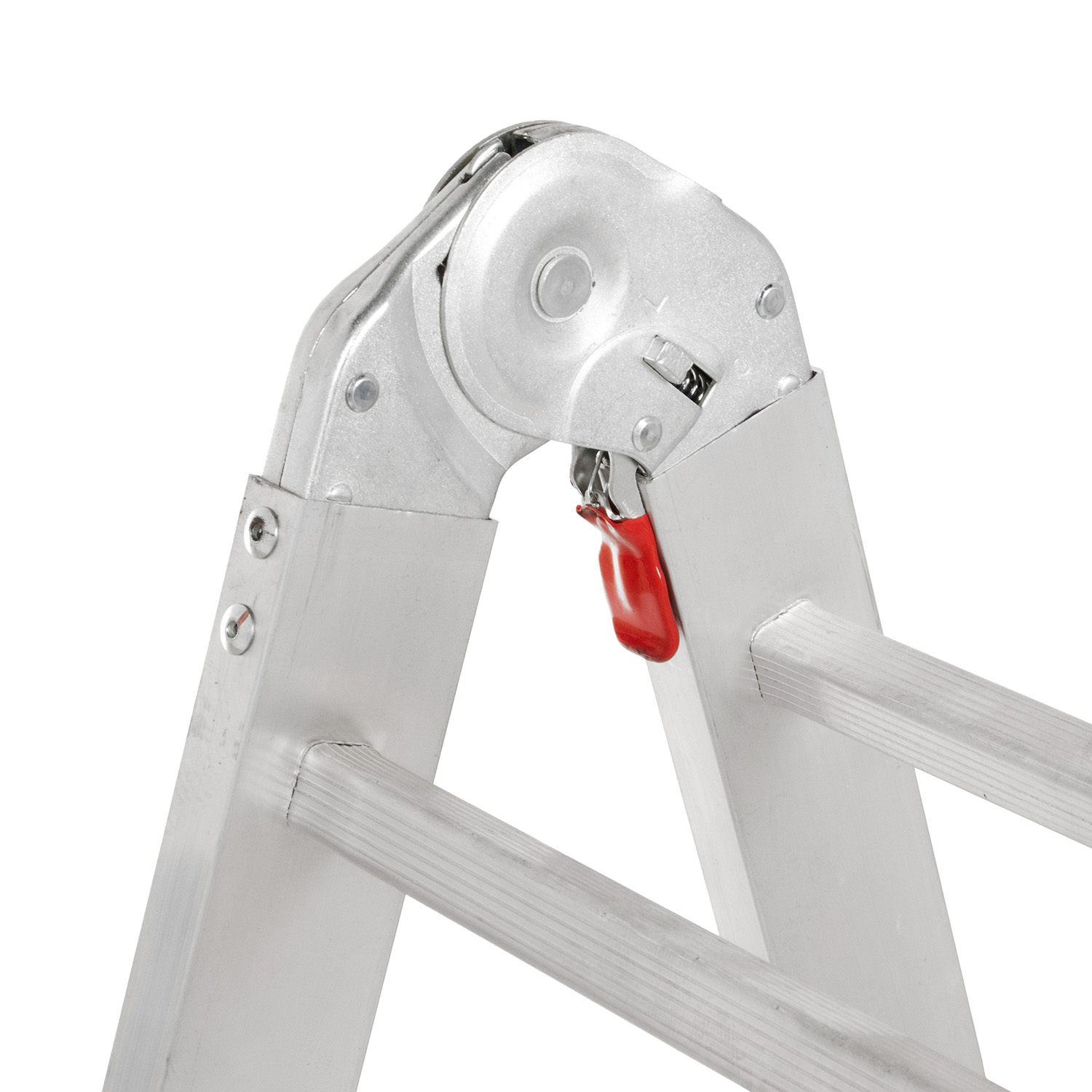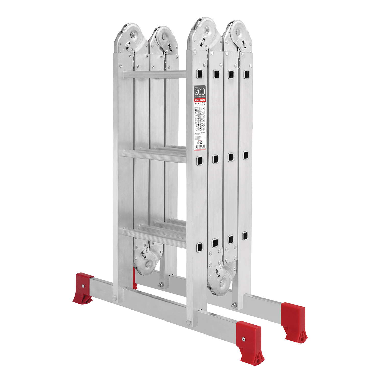 Лестница-трансформер VIRA 4х3 600403 автоматически фиксируется в выбранном положении и применяется в таких вариациях, как помост, стремянка, приставная односекционная или приставная согнутая лестница. Модель легко складывается в несколько раз, что обеспечивает ее исключительную компактность и простое хранение. Траверса закреплена при помощи болтовых соединений, что позволяет без труда отсоединять ее для уменьшения ширины изделия до 40 см и удобства дальнейшей транспортировки. Лестница оборудована наконечниками из пластика и не скользит по рабочей площадке в процессе работы. Отличное качество сборки предотвращает разбалтывание секций при нагрузке и гарантирует долгий срок службы приспособления.