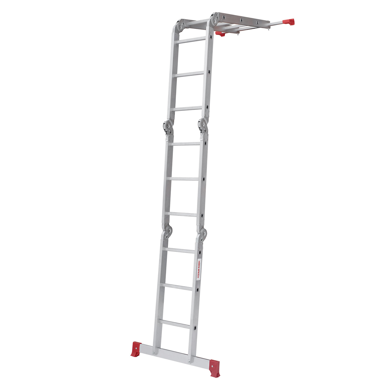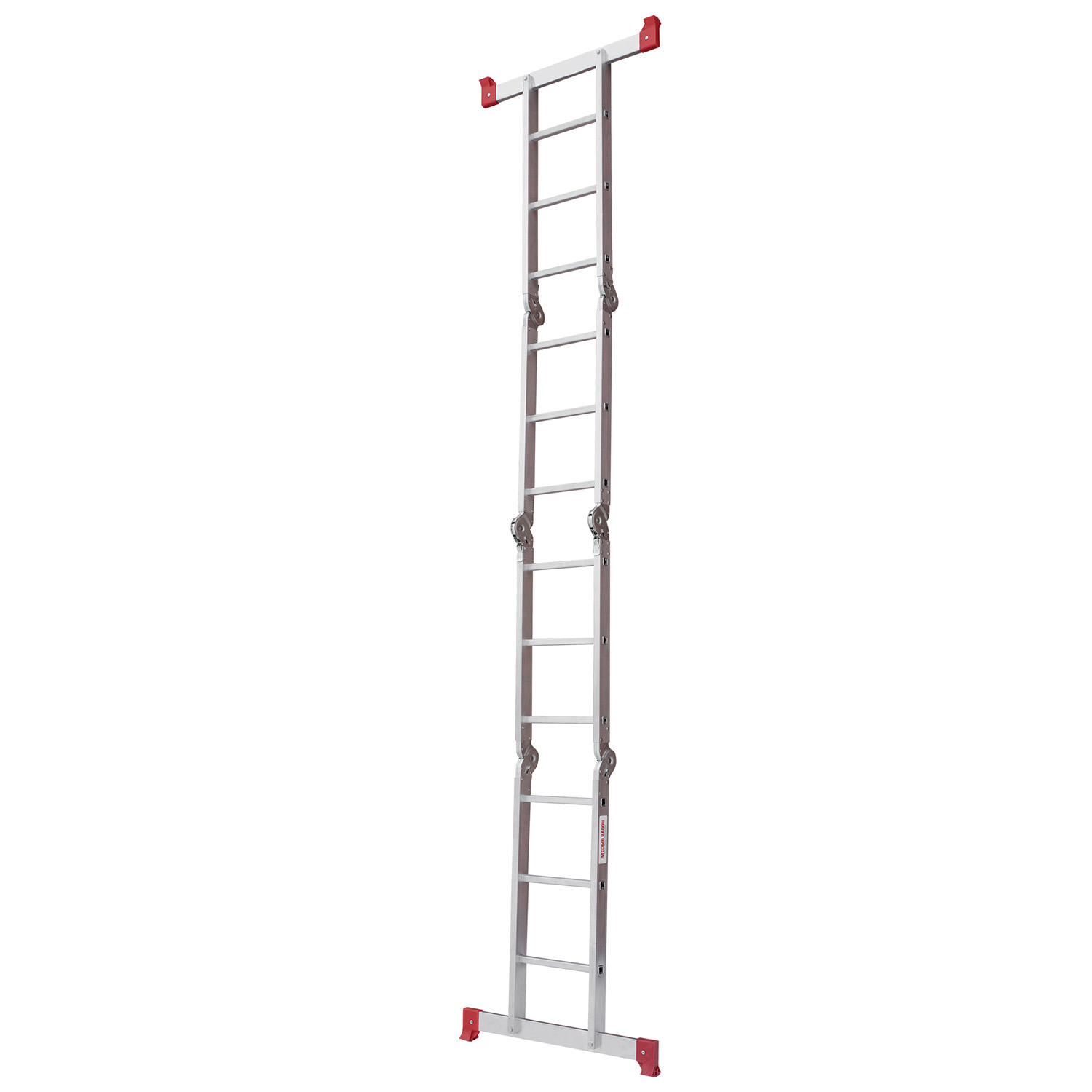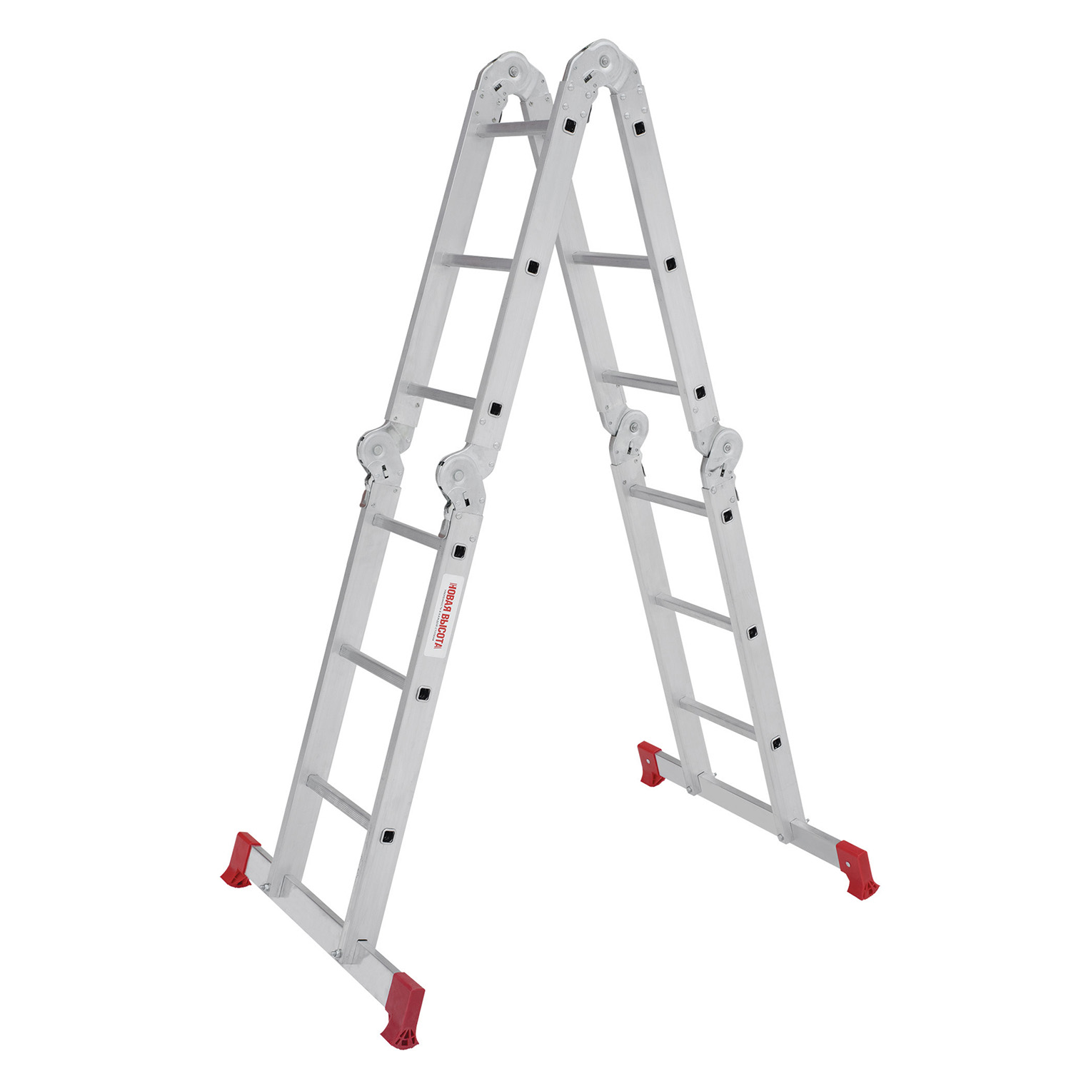 Лестница-трансформер VIRA 4х3 600403 автоматически фиксируется в выбранном положении и применяется в таких вариациях, как помост, стремянка, приставная односекционная или приставная согнутая лестница. Модель легко складывается в несколько раз, что обеспечивает ее исключительную компактность и простое хранение. Траверса закреплена при помощи болтовых соединений, что позволяет без труда отсоединять ее для уменьшения ширины изделия до 40 см и удобства дальнейшей транспортировки. Лестница оборудована наконечниками из пластика и не скользит по рабочей площадке в процессе работы. Отличное качество сборки предотвращает разбалтывание секций при нагрузке и гарантирует долгий срок службы приспособления.