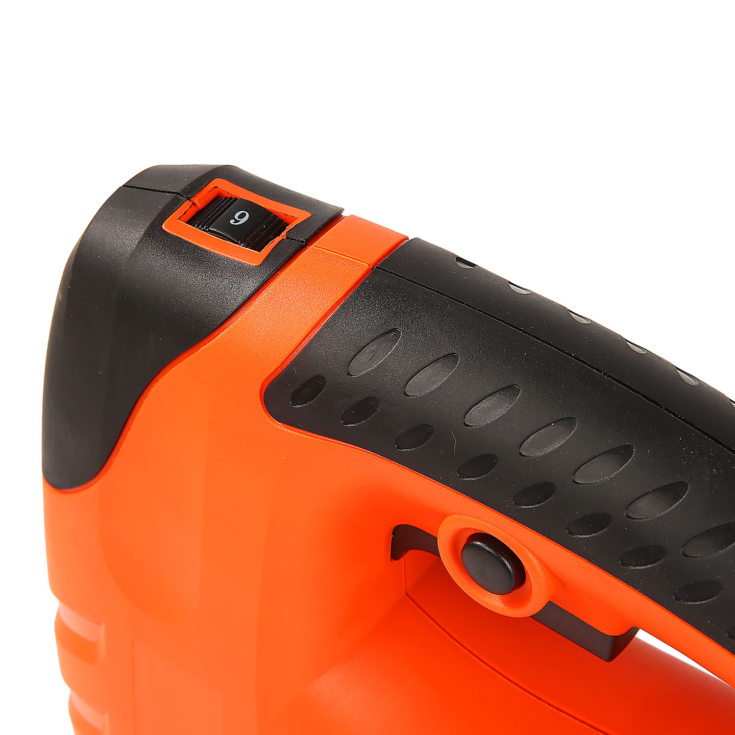 • В конструкции лобзика предусмотрен прозрачный защитный экран для обзора рабочей зоны, что создает