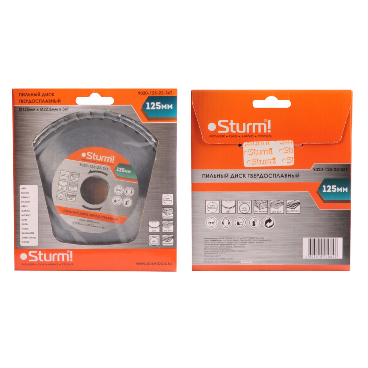Диск Sturm 9020-125-22-36T является сменным элементом для циркулярных и торцовочных пил.