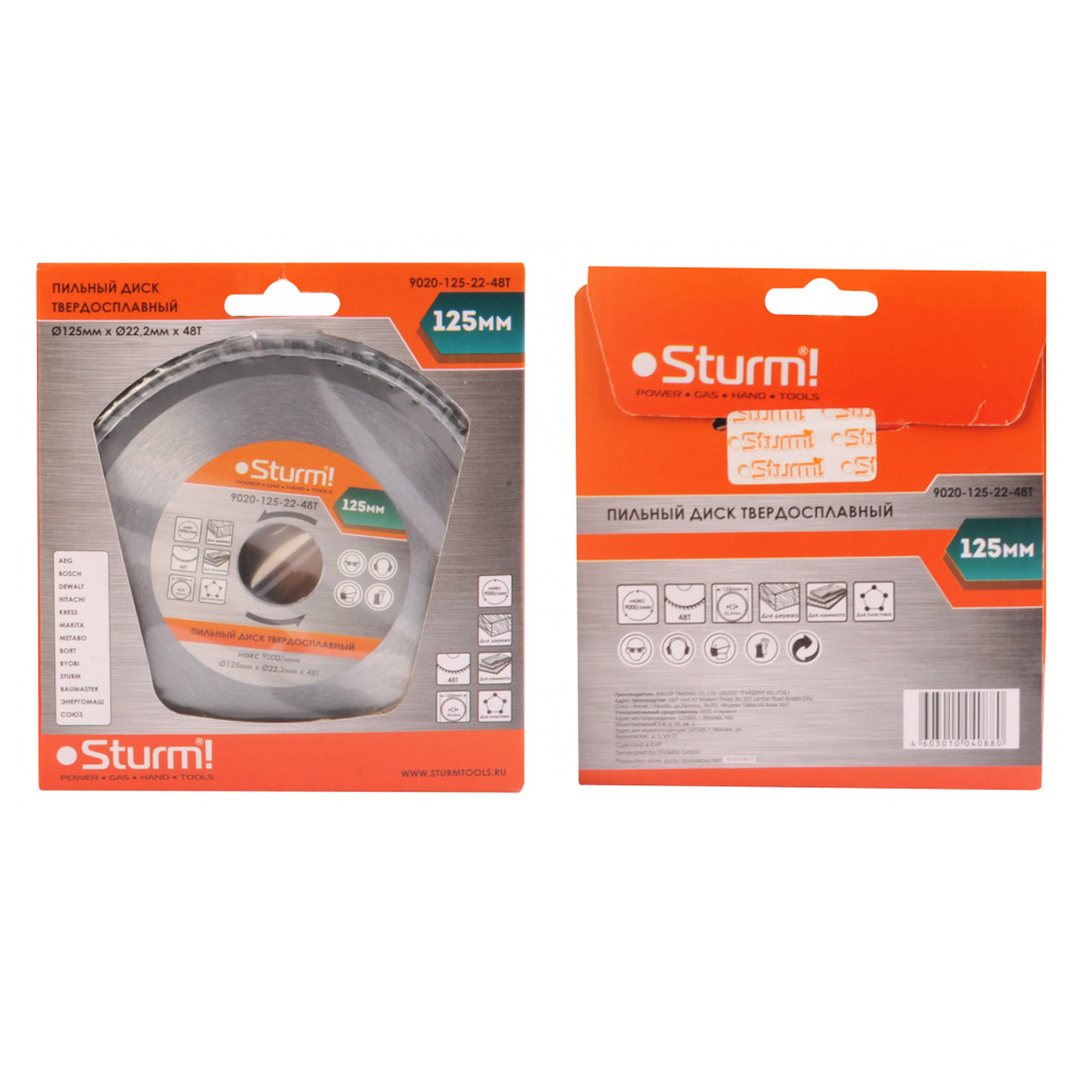 Диск Sturm 9020-125-22-48T является сменным элементом для циркулярных и торцовочных пил.