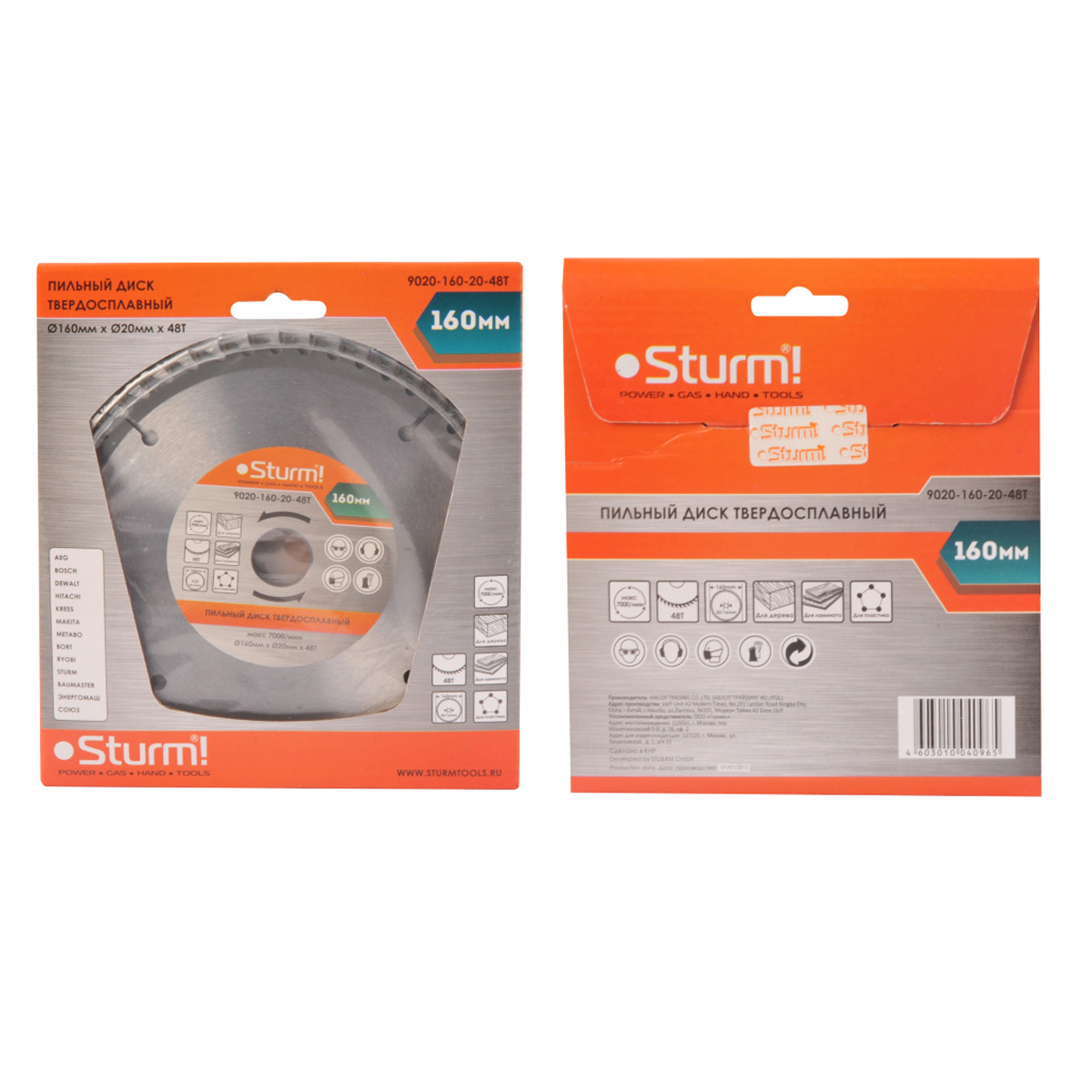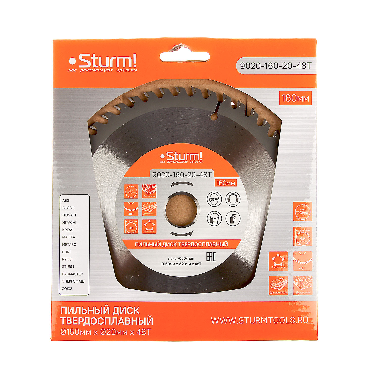 Диск Sturm 9020-160-20-48T является сменным элементом для циркулярных и торцовочных пил.