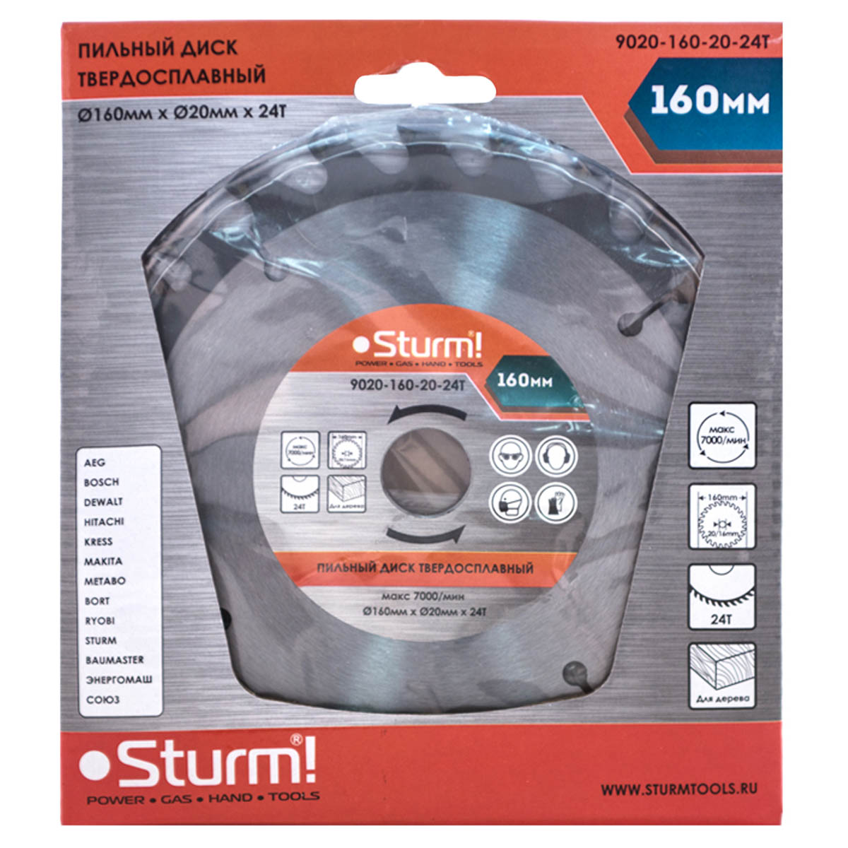 Диск Sturm 9020-160-20-24T является сменным элементом для циркулярных и торцовочных пил.