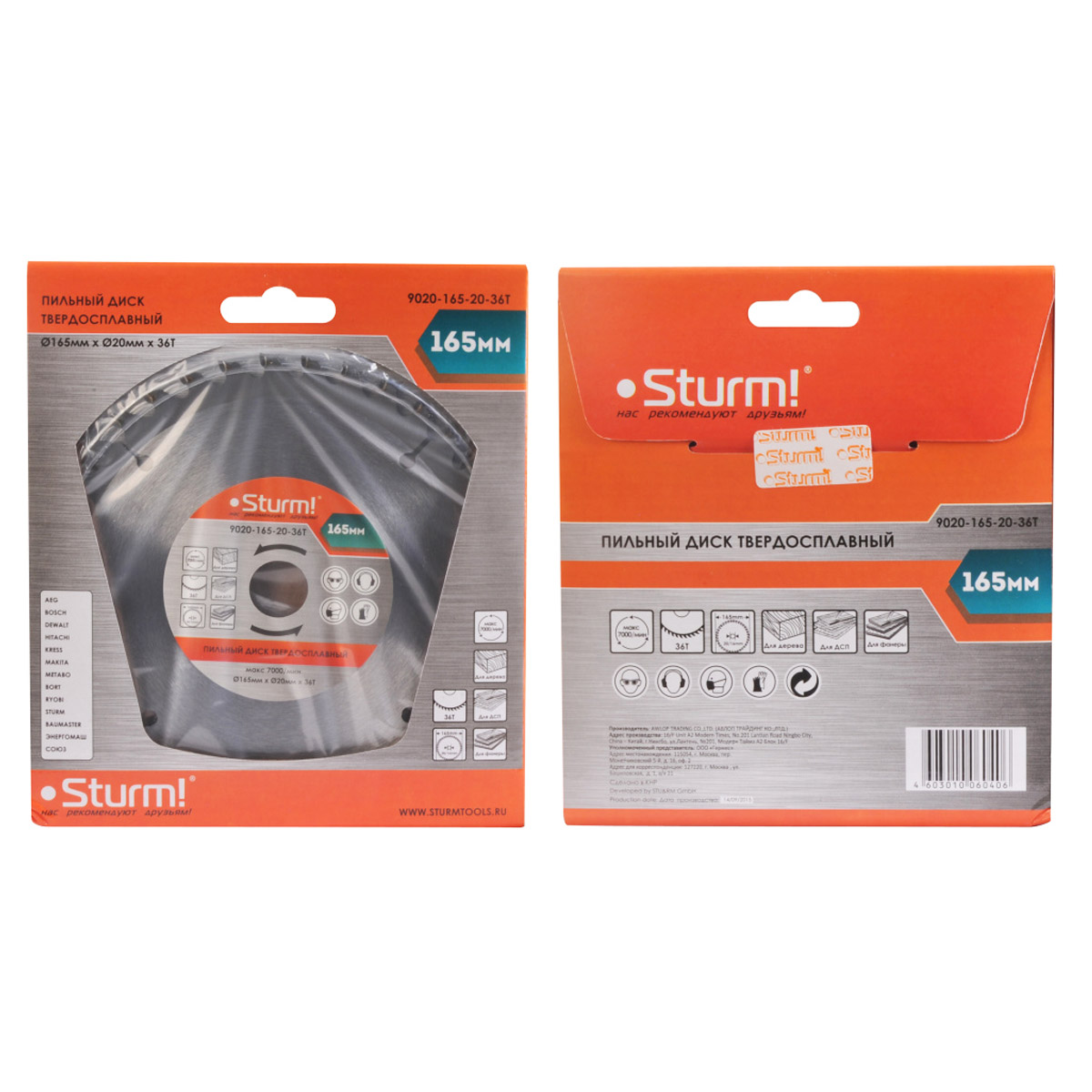 Диск Sturm 9020-165-20-36T является сменным элементом для циркулярных и торцовочных пил.