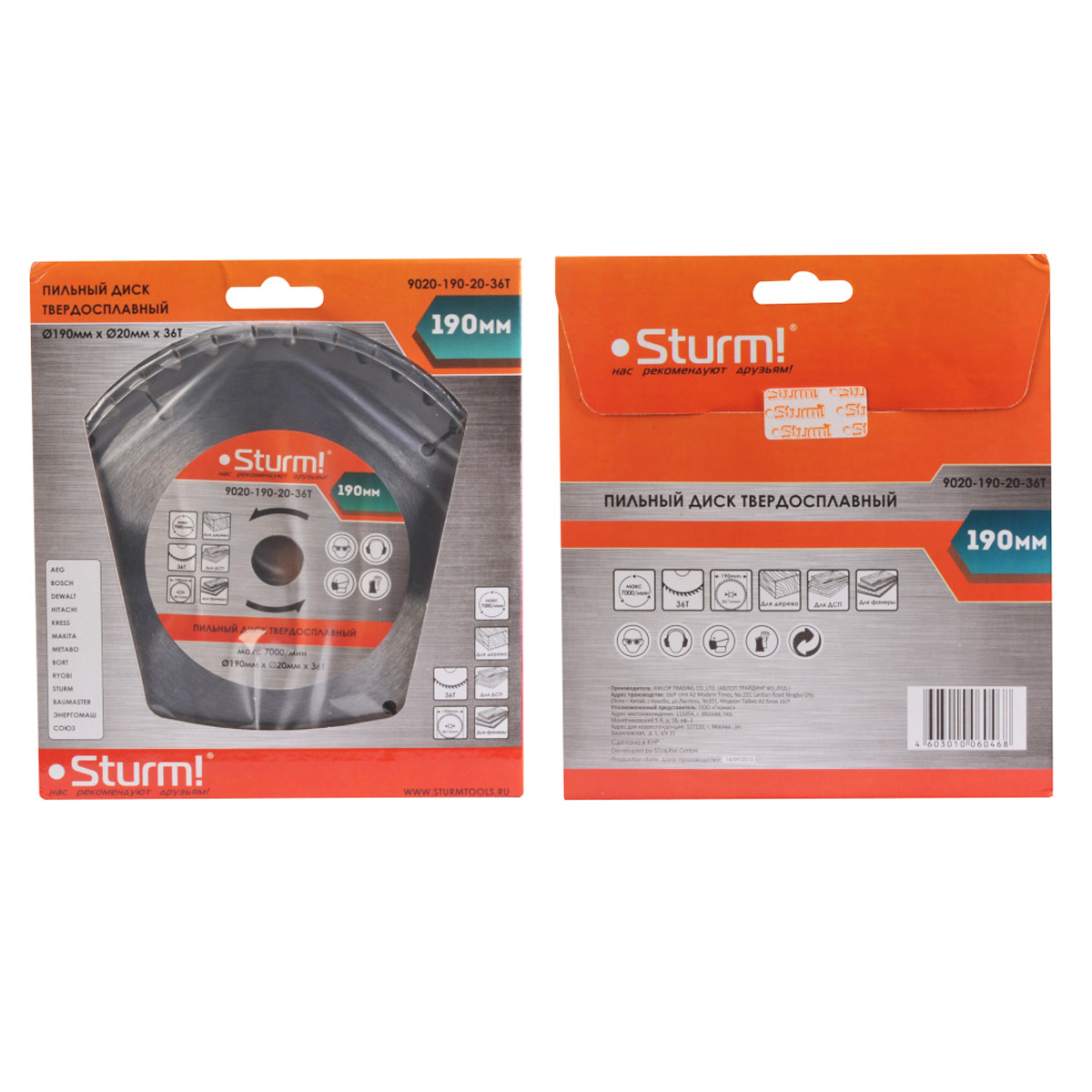 Диск Sturm 9020-190-20-36T является сменным элементом для циркулярных и торцовочных пил.