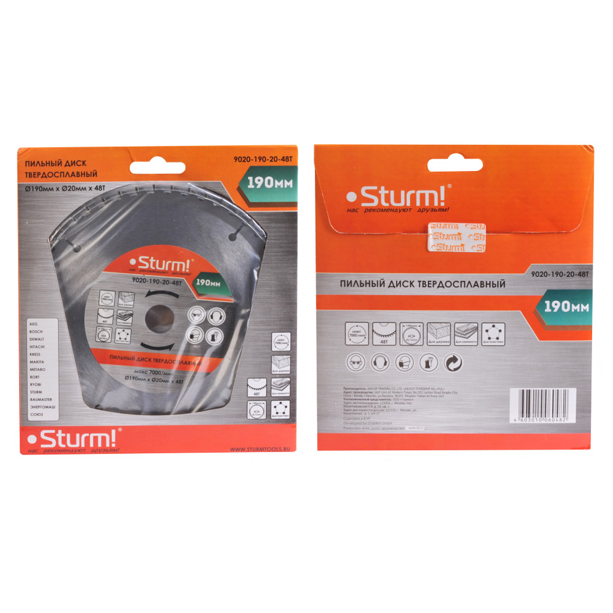 Диск Sturm 9020-190-20-48T является сменным элементом для циркулярных и торцовочных пил.