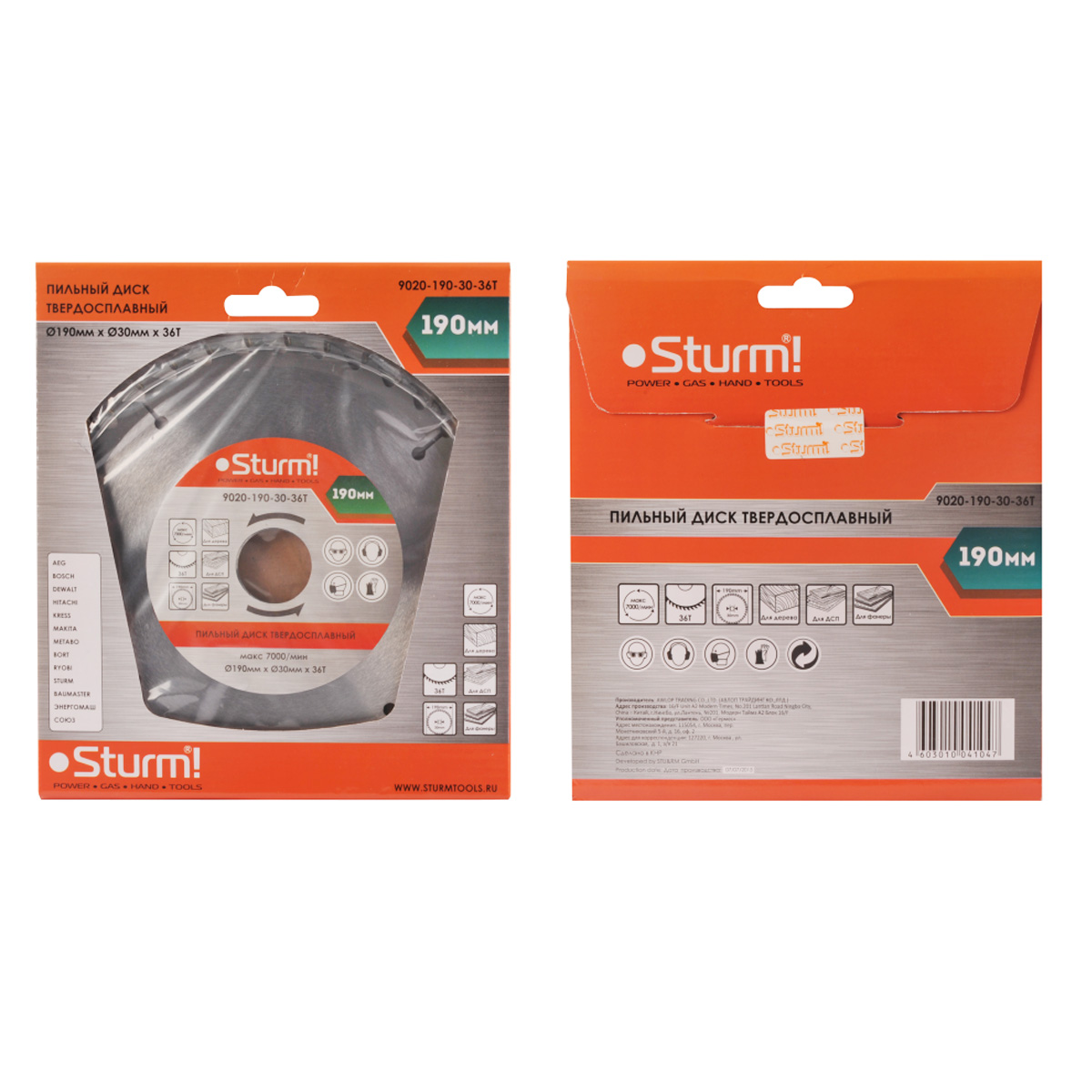 Диск Sturm 9020-190-30-36T является сменным элементом для циркулярных и торцовочных пил.