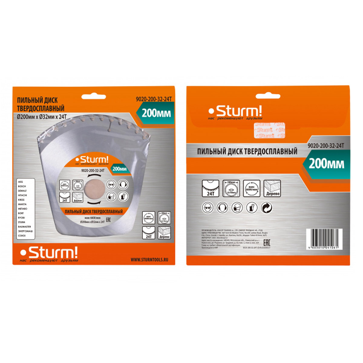 Диск Sturm 9020-200-32-24T является сменным элементом для циркулярных и торцовочных пил.