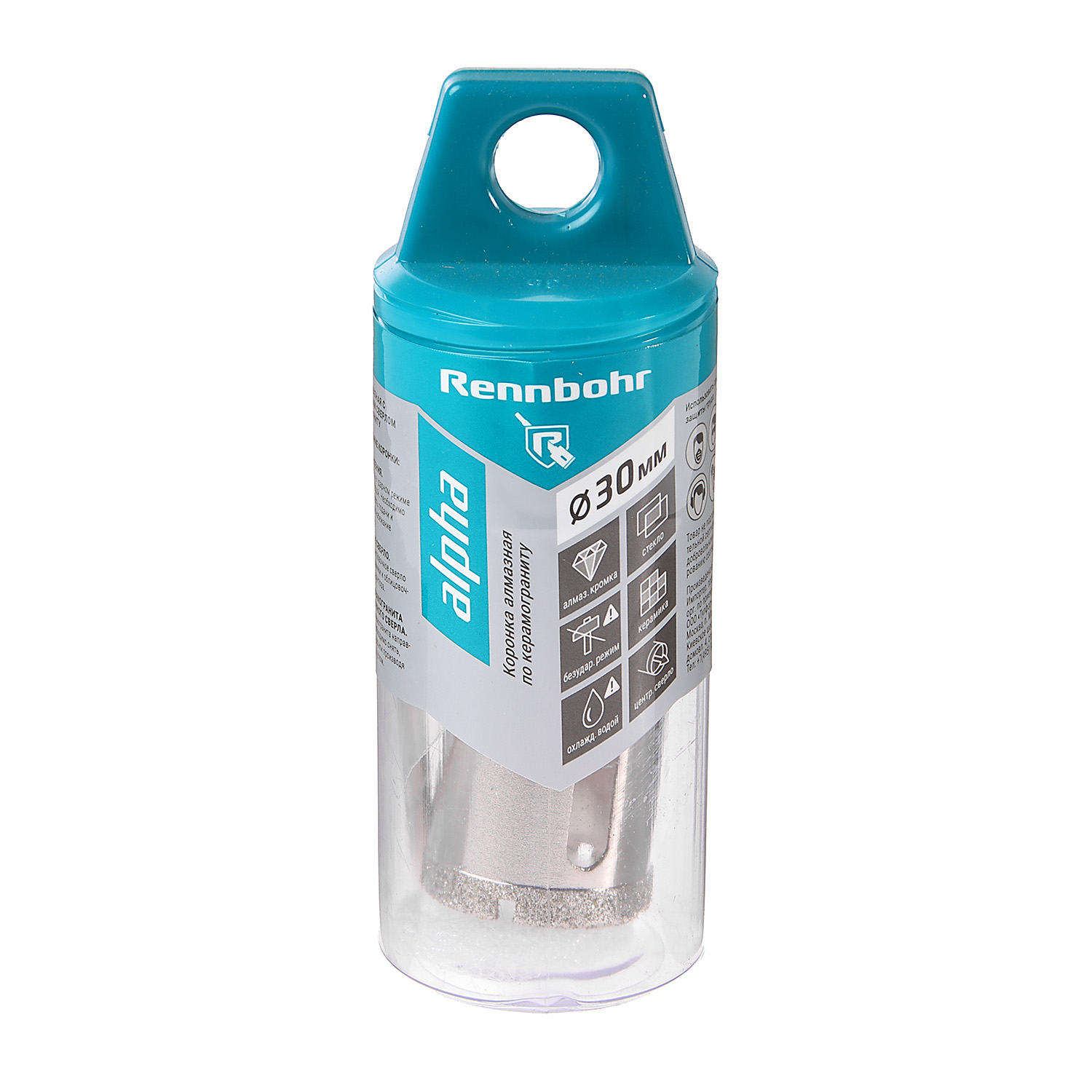 Коронка алмазная с центрирующим сверлом по керамограниту и керамике 30 мм RENNBOHR 676230 предназначена для обработки керамогранита, керамической плитки, изделий из керамики.